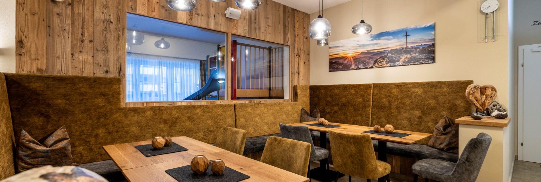 Spacious "diamond" suite for 2 - 4 persons on the 2nd floor with view of the ski slope, sleeping area and living/sleeping area are separated, seating with table and chairs, bathroom with bathtub (shower possible) and two washbasins, separate WC, solid wood furniture, 2 flat-screen TVs, safe, balcony, suitable for allergy sufferers