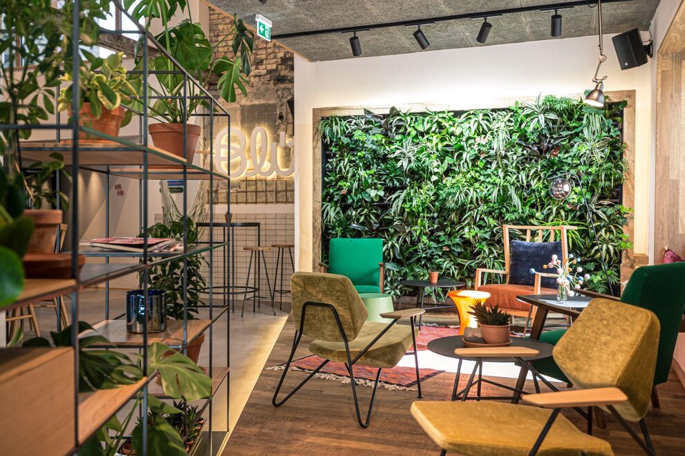 Here, you can wonderfully enjoy the sun. Our Blü Terrace Studio has its own fully equipped kitchenette with a dishwasher, cooktop, and microwave.