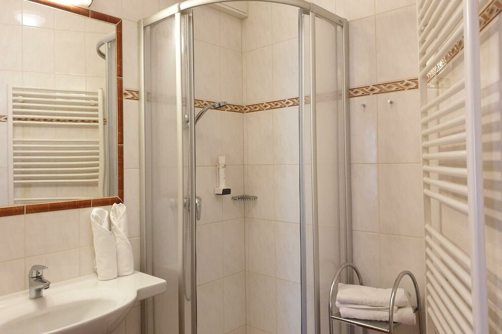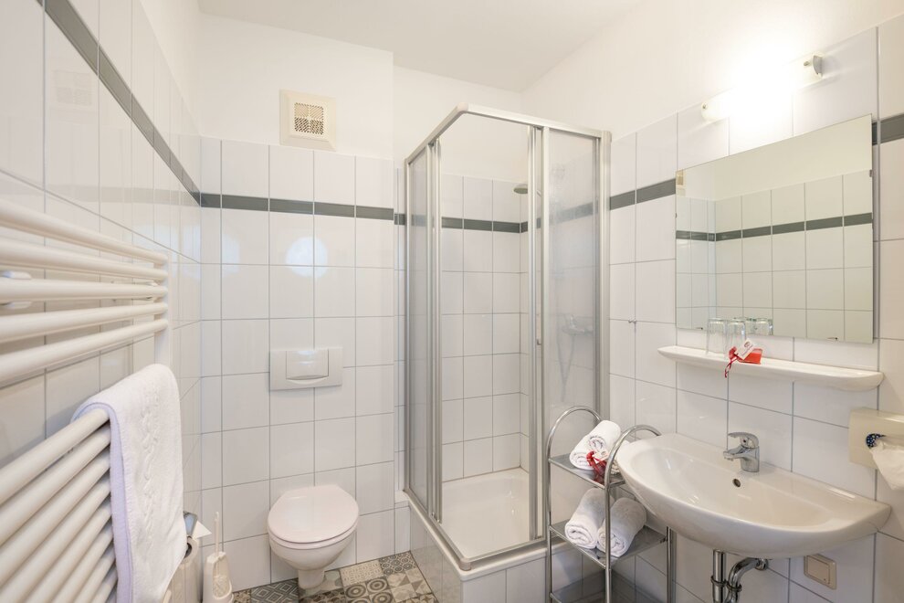 Bräu-Single-Room, equipped with one single-bed, bath-room with shower/WC, hairdrier, cable-flat-TV, safe, for 1 person.