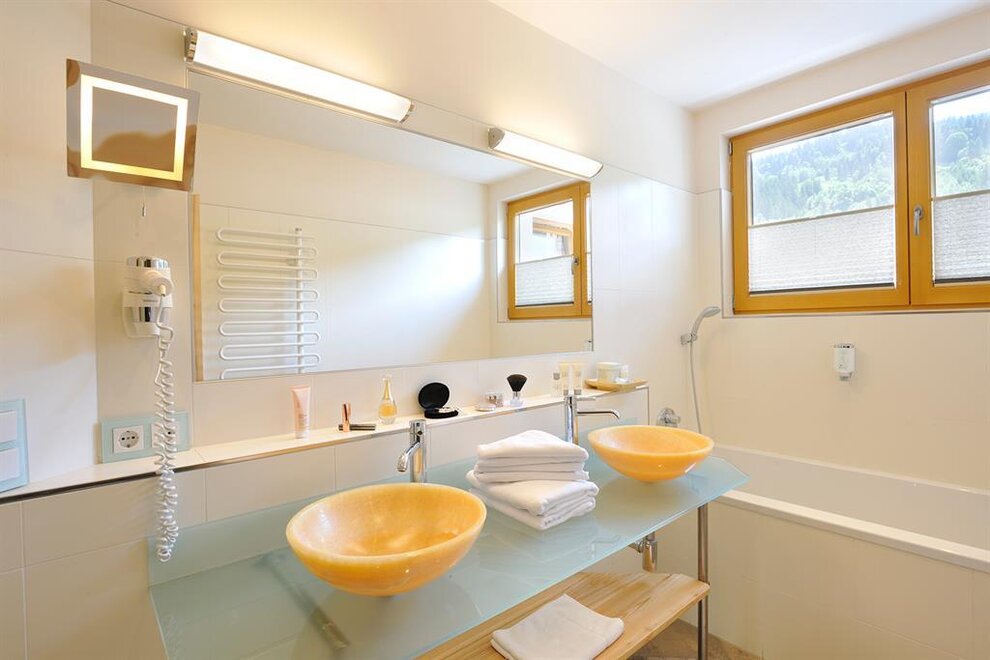Comfortkamer met ligbad en douche en wc, haardroger, directe telefoon, satelliet-tv, gratis wifi, kluis en balkon