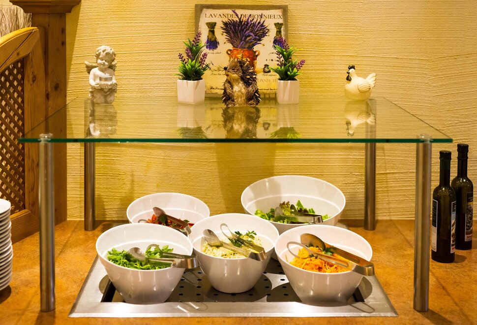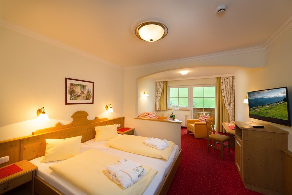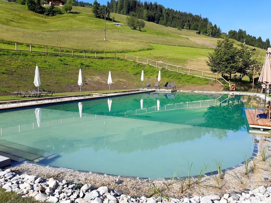 Comprehensive and varied breakfast buffet, 4-course-menu for dinner, Wellness, swimming pool outdoor, Free skiing bus, own tobbogan run, Spacious playground for children (indoor + outdoor), Pets welcome € 20,--/day without feed)