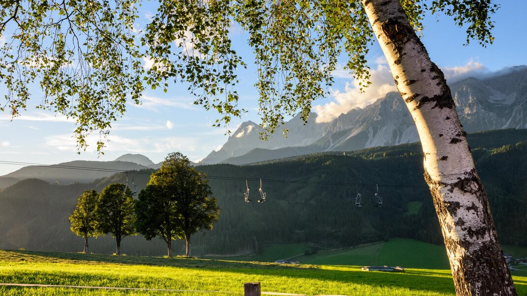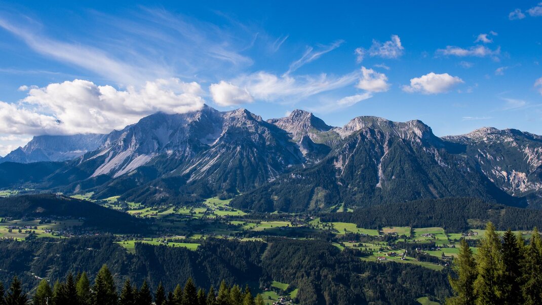• Fantastisch uitzicht richting Ennstal, Dachstein en Hochwurzen