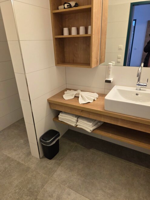 The double room has a small bathroom with shower and WC, cable TV, free WLAN and no balcony.