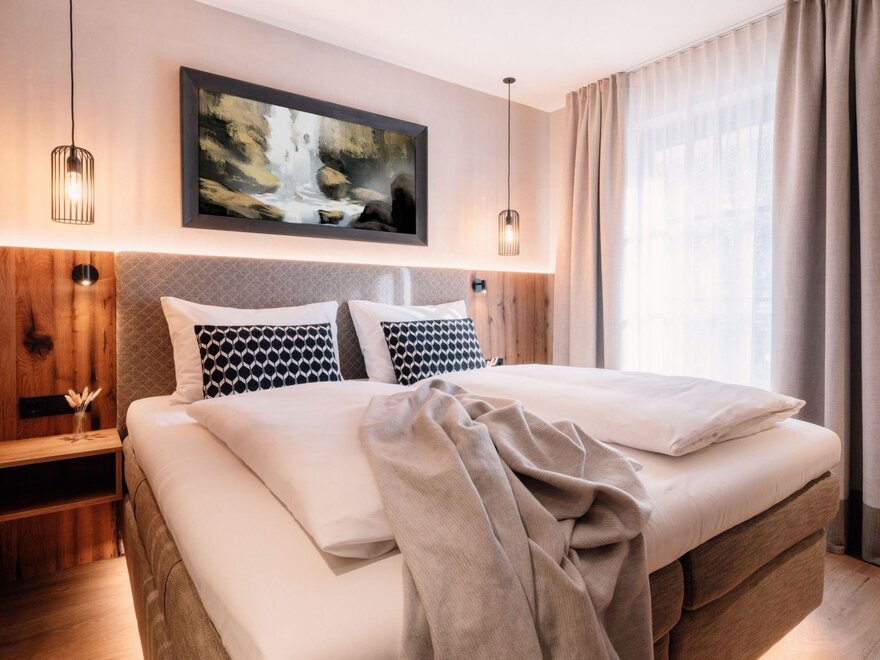 Gezellig, alpen, stedelijk. Voor iedereen die wat meer ruimte om te ontspannen wil. Met z’n tweeën op vakantie in ZWEIklang. Met gesloten badkamer.