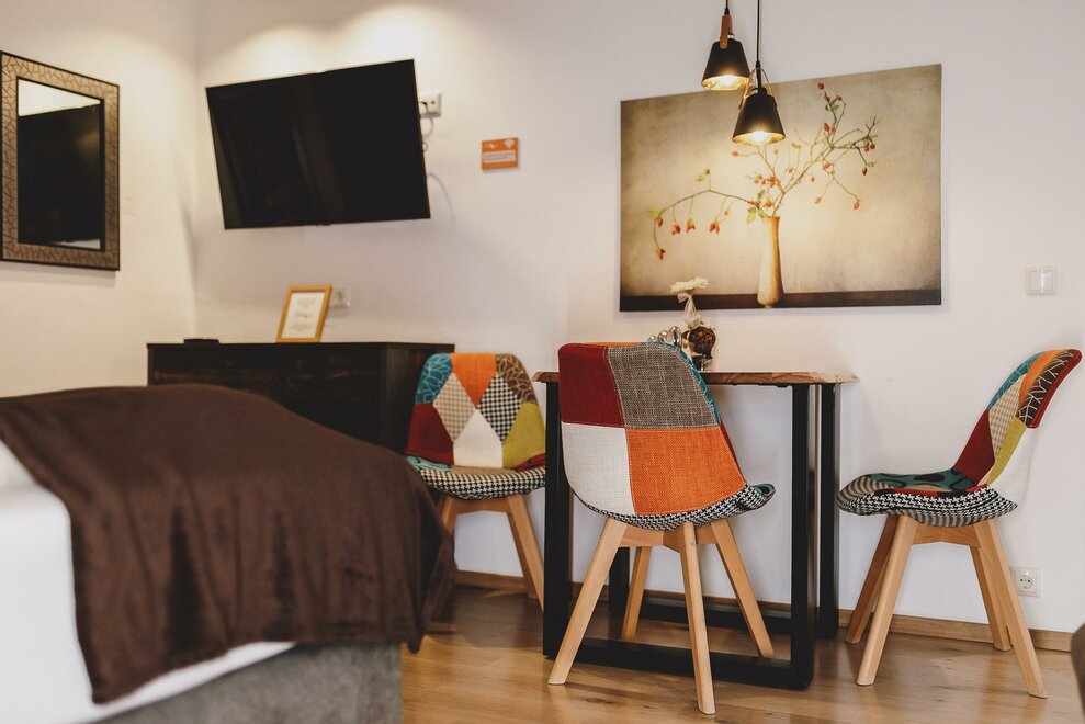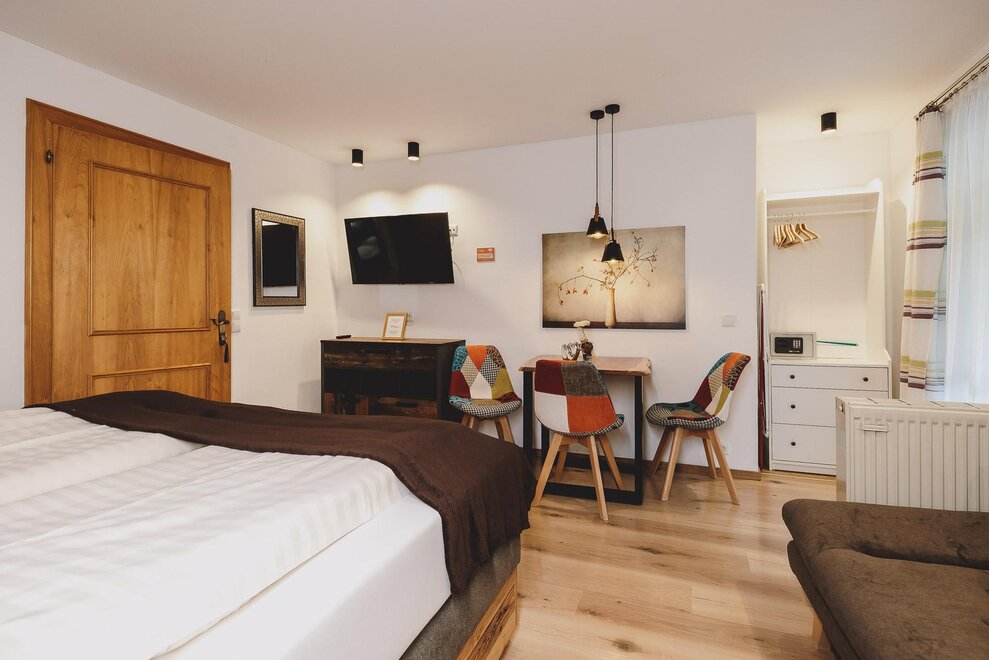 Our sixth and newest prank! The double room Small & Sexy offers with approx. 25 m² enough space for 2 people. Enjoy the morning sun on the balcony of the room on the first floor. A cozy living room, a separate kitchen and the bathroom round off your holiday in the newly renovated Small & Sexy completely.