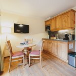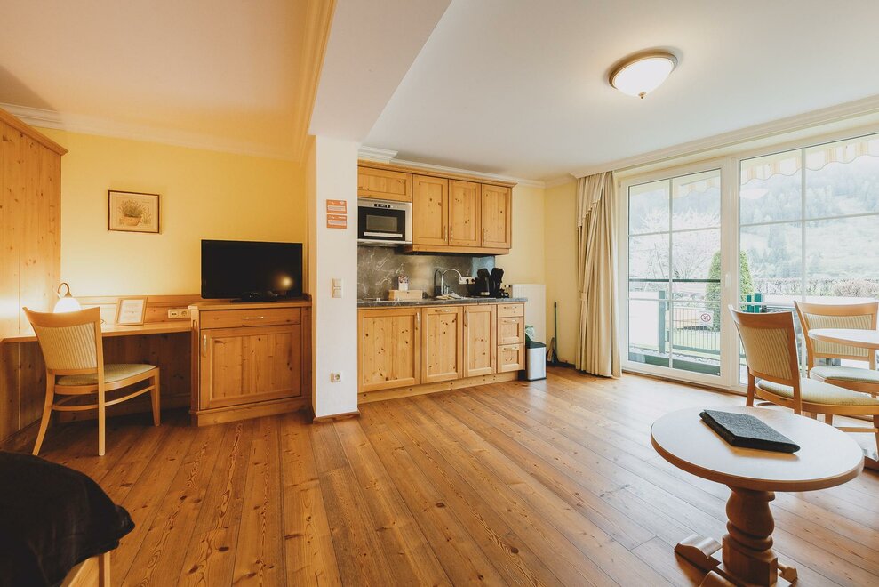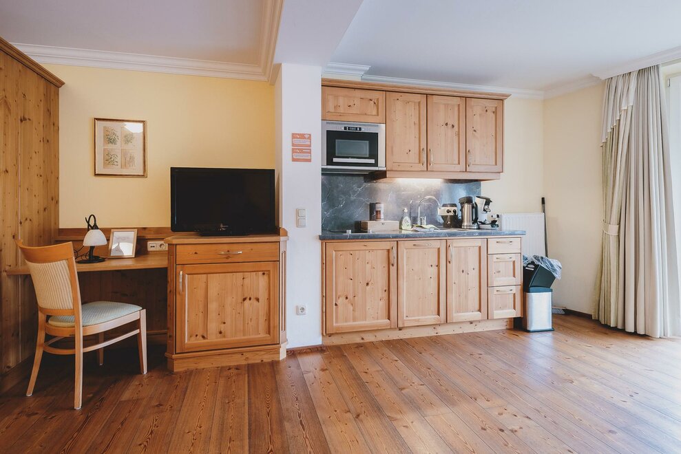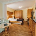 Studio 40m², with living room / bedroom for 2-4 pers. with wooden floors, solid wood furniture, cable TV, shower / toilet, cozy sitting area with sofa bed, kitchenette with Senseo coffee machine inkl.Pads, small selection of teas and kettle, balcony
