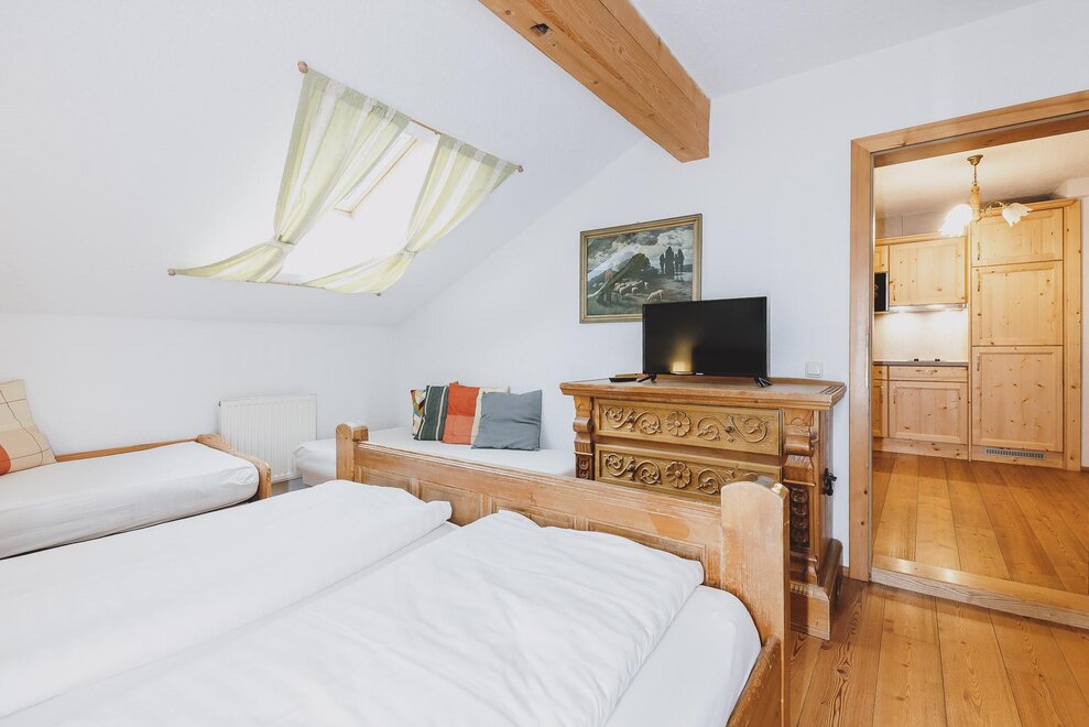 Apartment 60m², with extra bedroom for 4-6 persons. with wooden floors, solid wood furniture, cable TV, shower / toilet, cozy sitting area with sofa bed, kitchenette with Senseo coffee machine inkl.Pads, small selection of teas and kettle, balcony