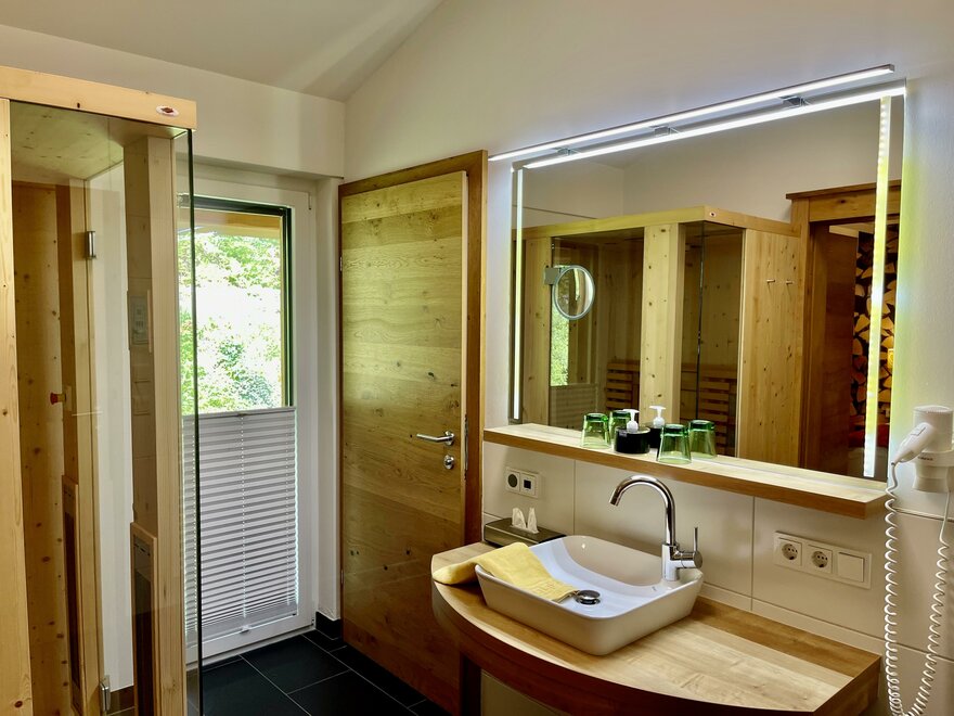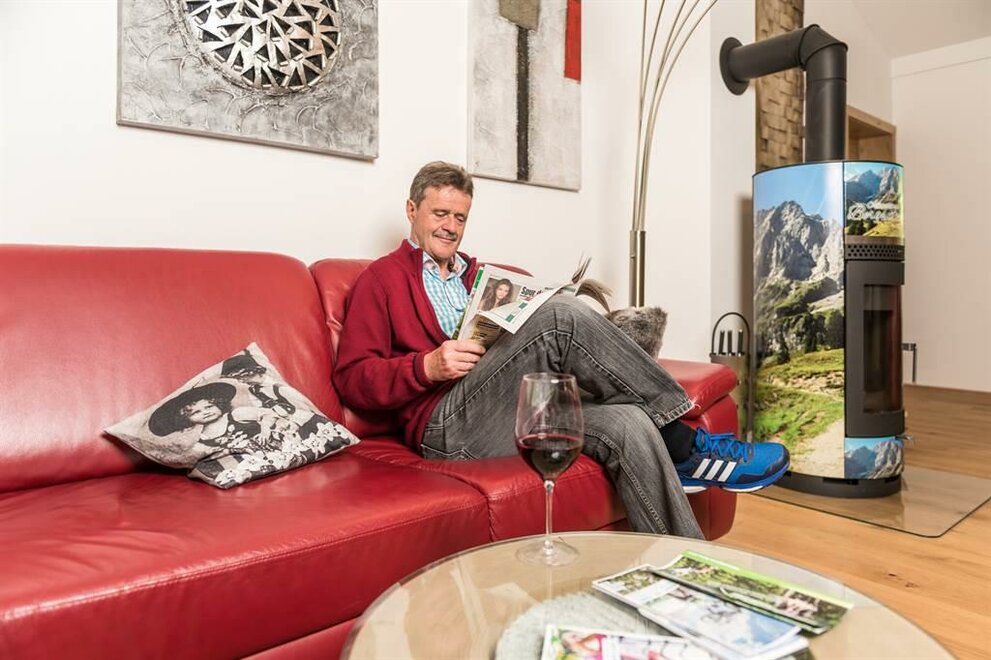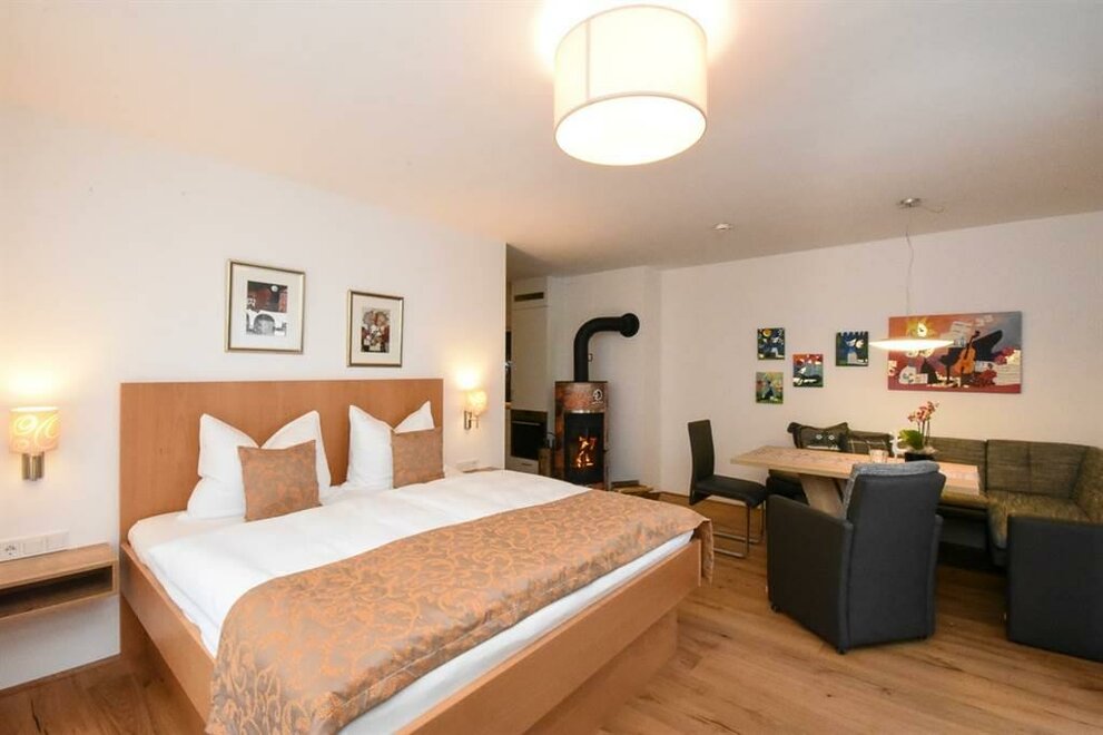 Gezelligheid & design voor twee: gecombineerde woon-slaapruimte met kachelofen, gezellige zithoek met molensteen tafel, grote flatscreen met kabel-tv, volledig uitgeruste Siemens keuken, badkamer met douche, wc, radio, cosmeticaspiegel, föhn en infraroodcabine. 20m² grote terras en toegang tot de tuin.Romantiek en gezelligheid voor Twee: Gecombineerde woon-slaapruimte met houtkachel, gezellige zithoek met molensteen-tafel, grote flatscreen met kabel-tv, volledig uitgeruste keuken, badkamer met douche, WC, radio, cosmeticaspiegel, föhn en infraroodcabine. 20m² groot terras. Met eigen toegang tot onze tuin.