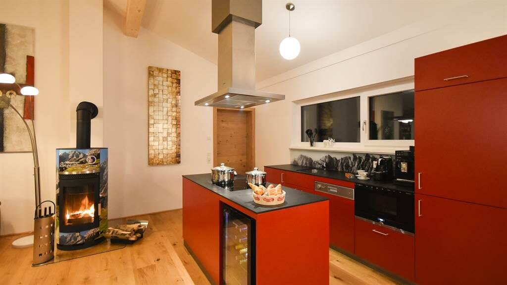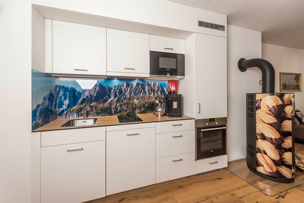 Zeer ruime woonkamer met houtkachel, knusse hoek met uittrekbare bank (extra bed) en grote molensteen tafel, grote flatscreen met kabel-TV, volledig uitgeruste keuken met eettafel. Groot balkon met uitzicht op de Hochkönig en het tuinhuis. Voldoende ruimte voor een campingbedje.Kenmerken kamer/appartement