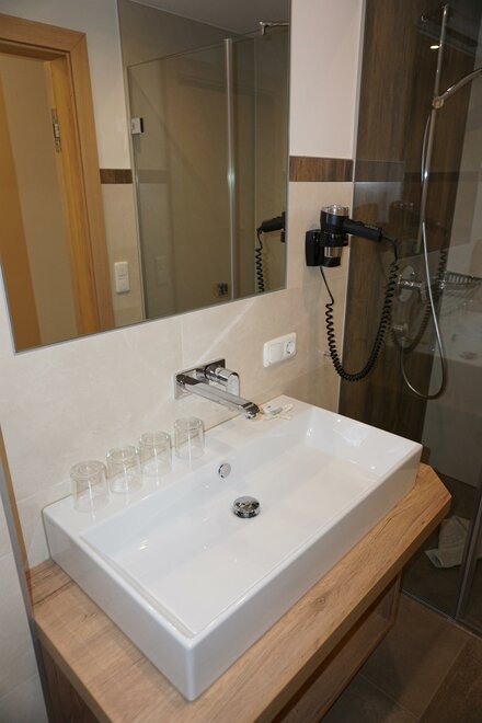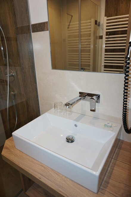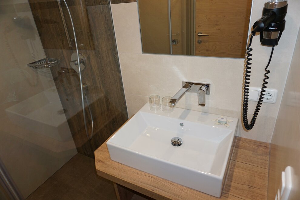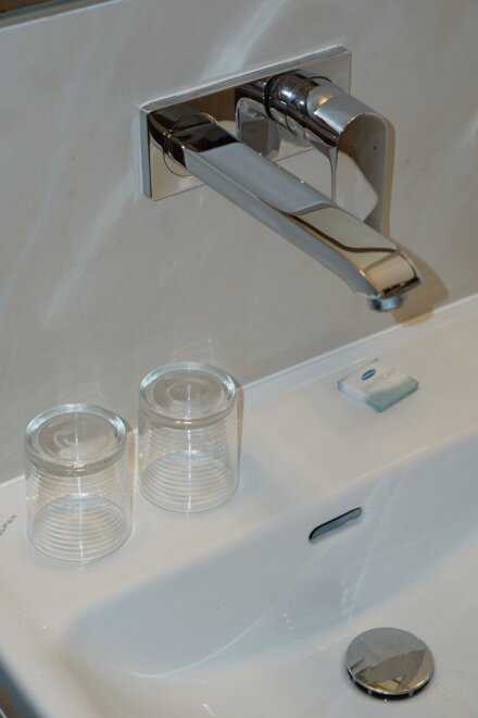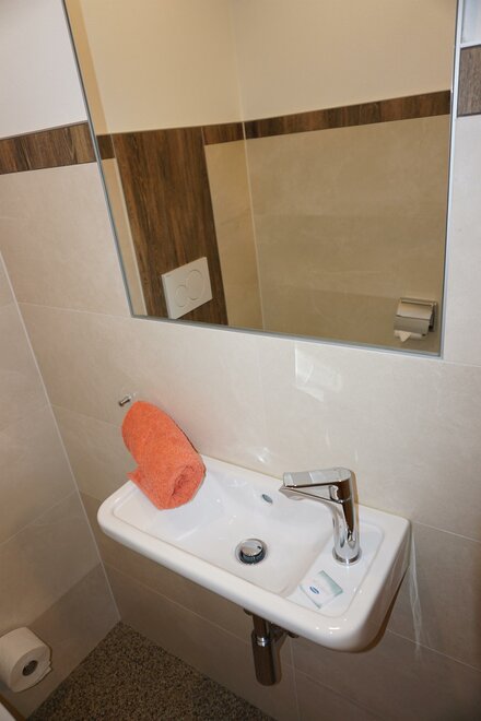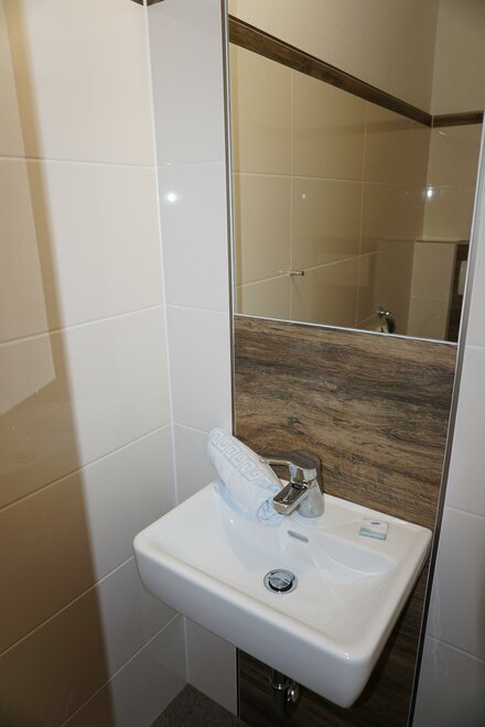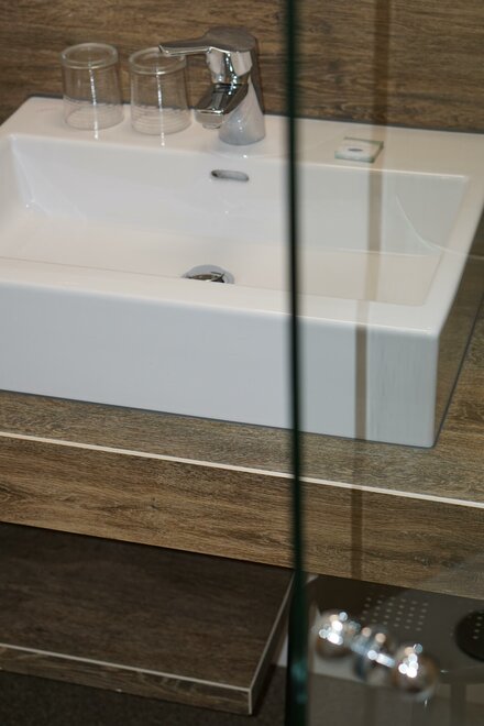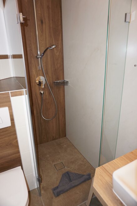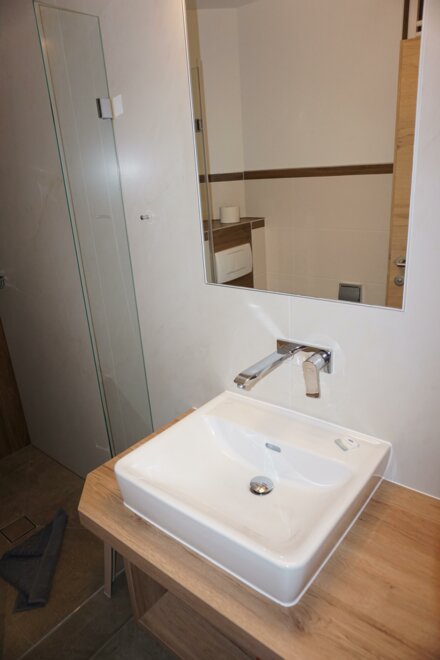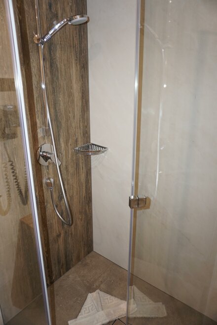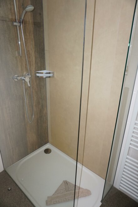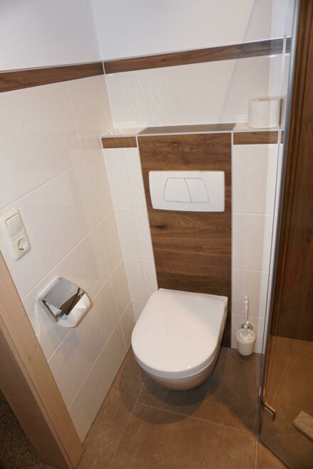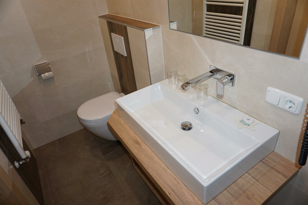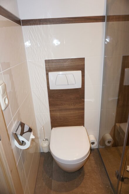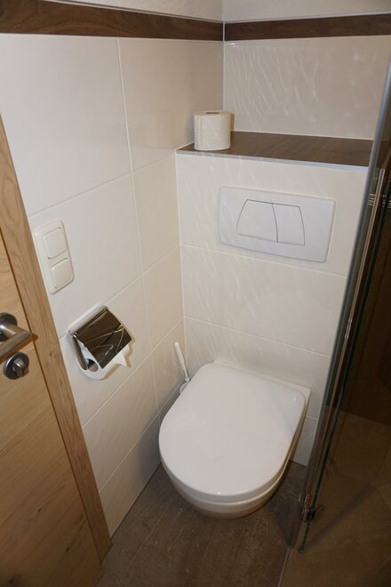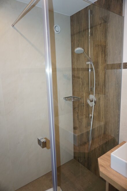 Het appartement biedt 2 badkamers - dat betekent twee keer een douche en toilet (aangrenzend aan de slaapkamer en aangrenzend aan de woonkamer).Inrichting badkamer