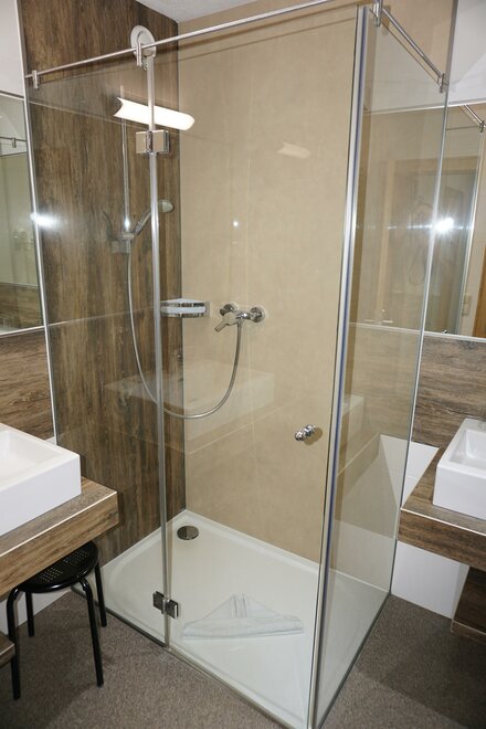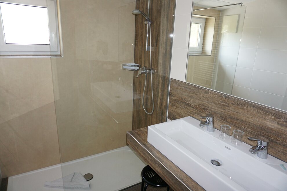 Mooie tweepersoonskamers met douche en WC, die niet alleen voor twee personen geschikt zijn, maar ook voor 1, 2 of meer.