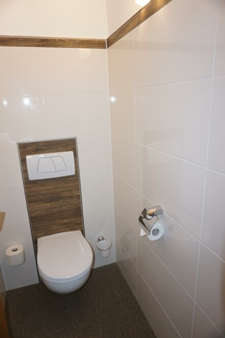 De zeer grote en ruime badkamer met douche en het aparte toilet zijn, net als de rest van het appartement, van de nieuwste voorzieningen voorzien.