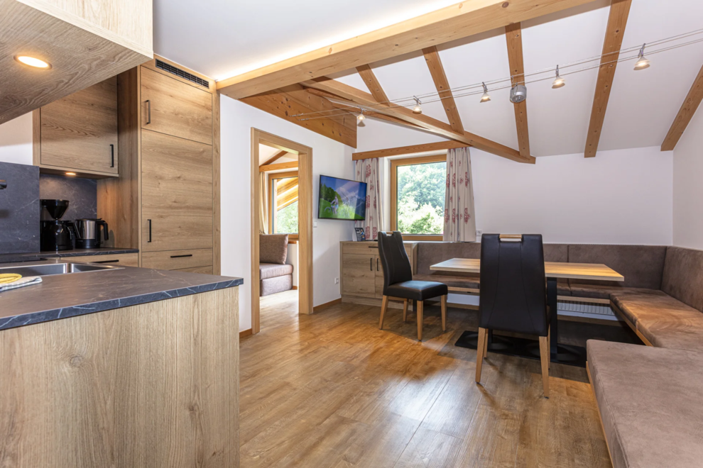Ons vakantieappartement Hochkönig biedt comfortabel onderdak aan maximaal 6 personen. Twee aparte slaapkamers zorgen voor voldoende privacy voor families of vrienden. Vanaf het zonnige balkon kunt u de flora en fauna in Maria Alm ontdekken.