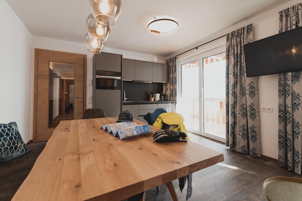 Tot 3 personen | 45 m² | 1 slaapkamer met een hoogwaardige boxspringbed | ruime woonkamer met een slaapbank (ideaal voor de 3e persoon, of als gezellig leesbed) | 1 moderne badkamer met inloopdouche | balkon met uitzicht op de Hochkönig en ochtendzon | geschikt voor stellen of kleine gezinnen