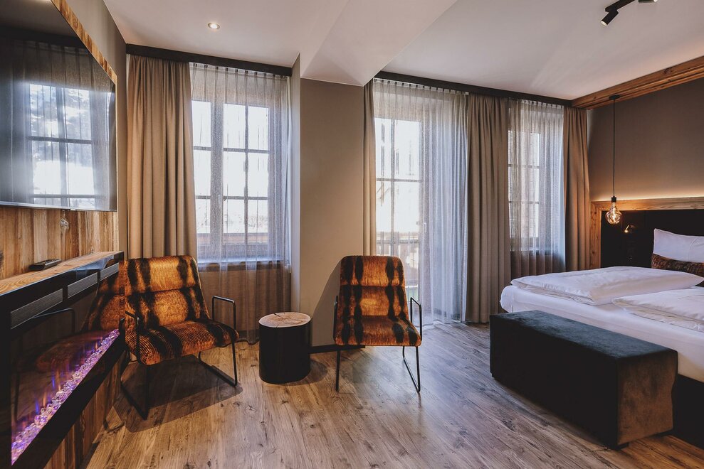 NEW from December 2022: our Alpine Studio Deluxe with 34 m² with balcony & free-standing bathtub with effect fire - for the perfect time for two. Modern, casual and cozy with lounge & distant view.