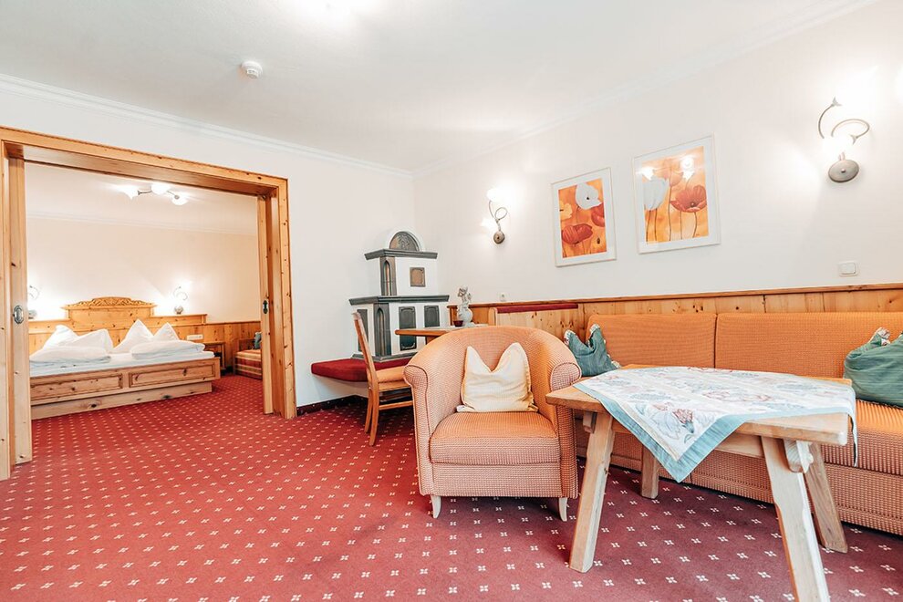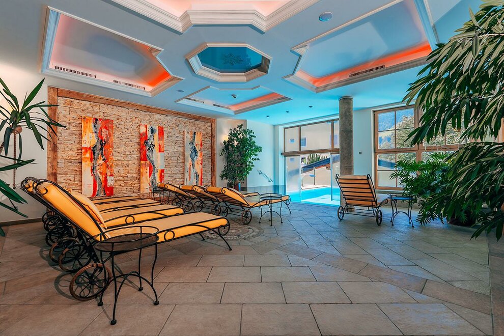 NEW from December 2022: our Alpine Spa Suite with 40 m² with its own infrared relax sauna, free-standing bathtub with effect fire and cozy daybed for fine moments for two. Modern, alpine design.