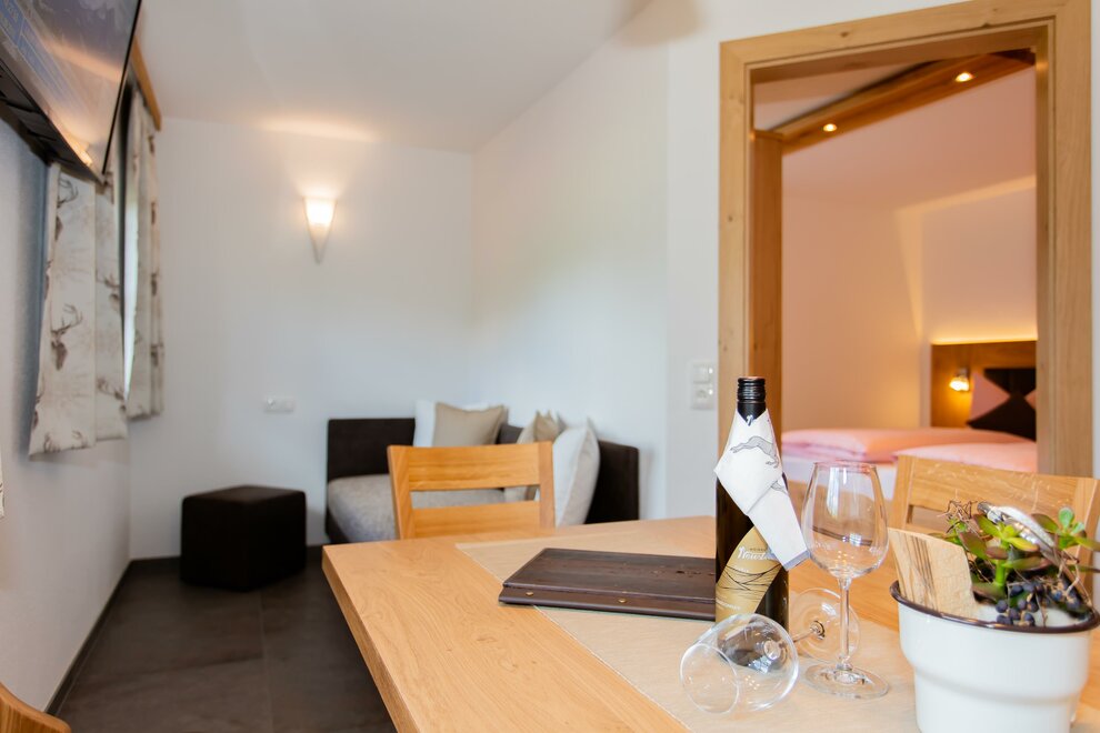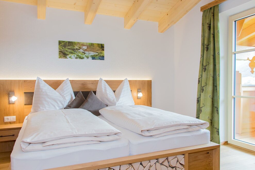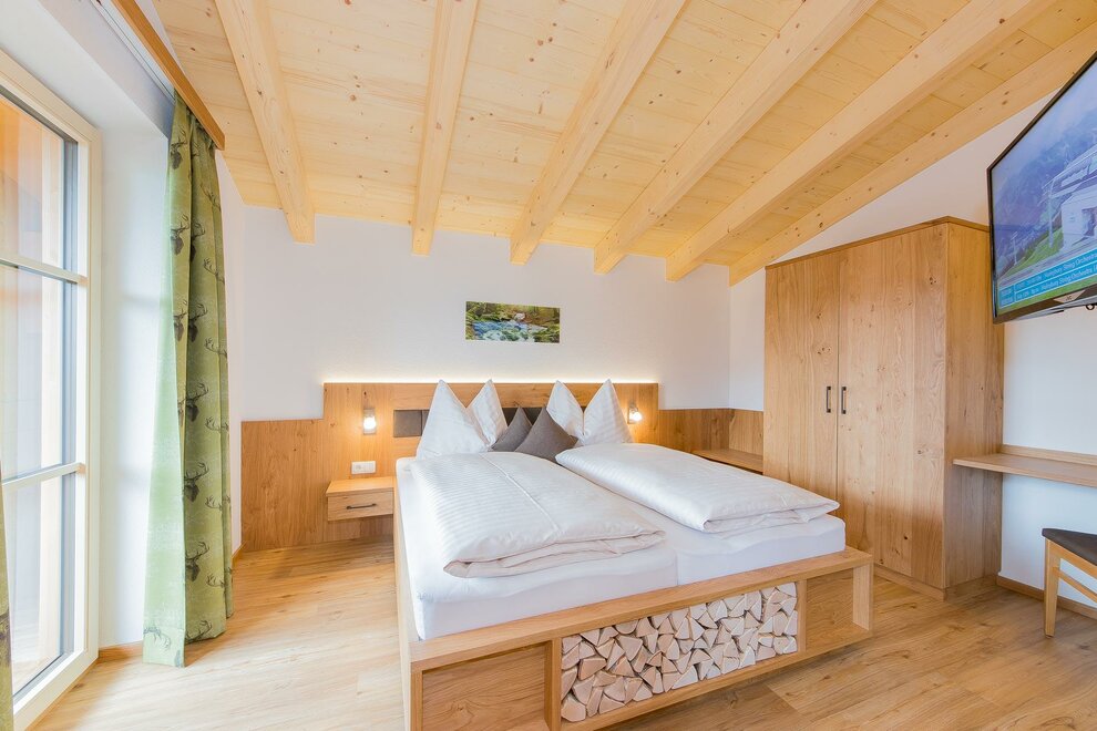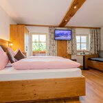 Met 26 m² woonoppervlakte biedt onze Steinerne Meer-kamer plaats aan maximaal 3 personen, beschikt over een tweepersoonsbed en een eenpersoonsbed, evenals douche/WC. De gezellige zithoek met tv-apparaat is ideaal om de dag met een glas wijn af te sluiten. Een eigen balkon, waar u van de ochtend- en voormiddagzon kunt genieten, biedt een sensationeel uitzicht op het Steinerne Meer en de Hochkönig. Gratis W-Lan aanwezig.Kenmerken kamer/appartement