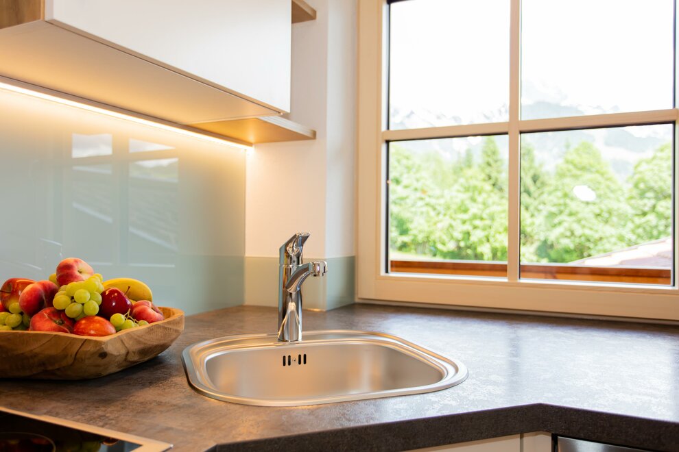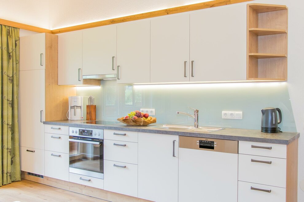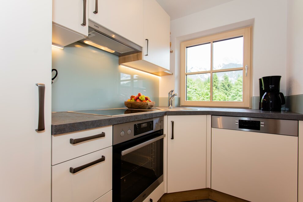 keuken volledig uitgerust met vaatwasser, koffiezetapparaat en waterkoker