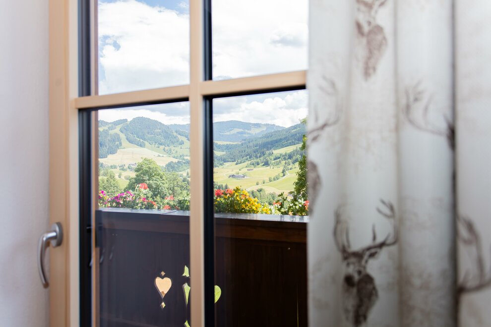 Vanaf het balkon heeft u uitzicht over het dorp van Maria Alm en de SchwalbenwandKenmerken kamer/appartement