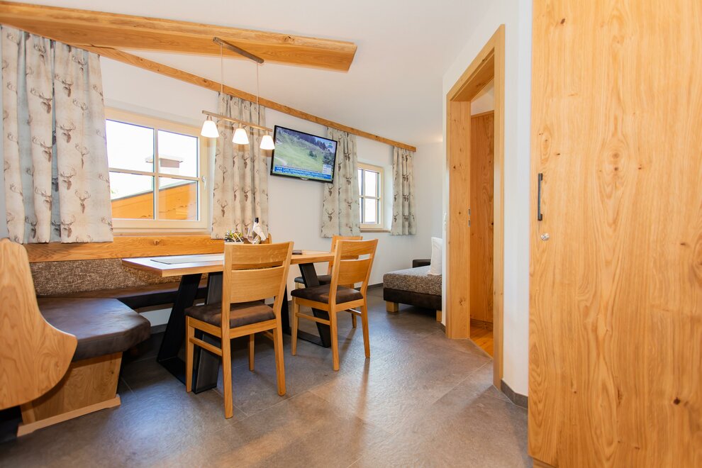 gezellige eetkamer met KTV en bank (slaapbank)