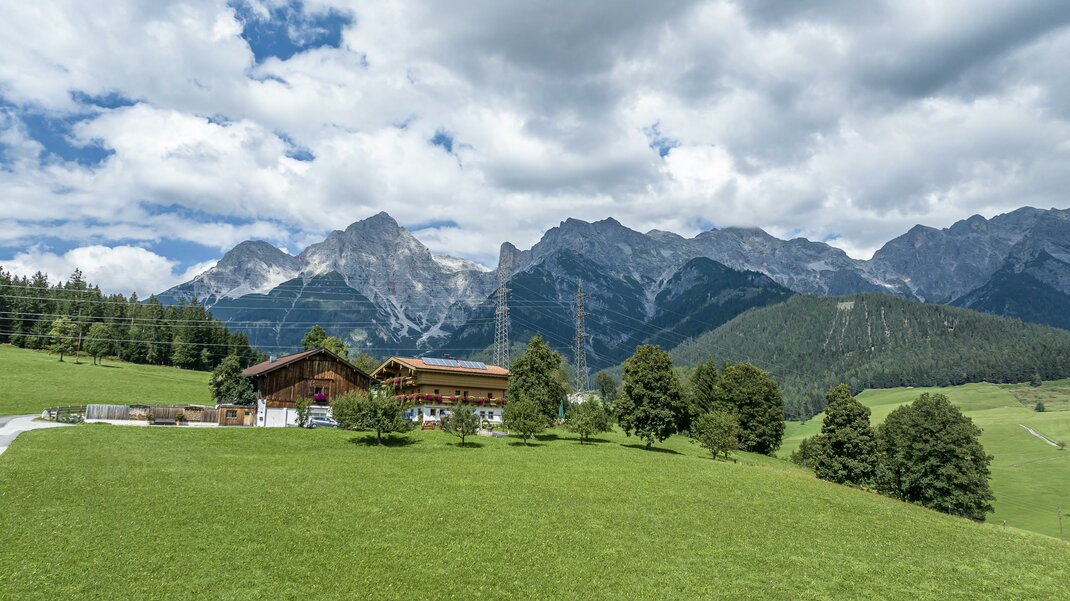 Door het dorpscentrum van Maria Alm, ongeveer 600m links over de brug naar de Grieβbachwinkl, daarna na ongeveer 700m links naar de Schönberghof