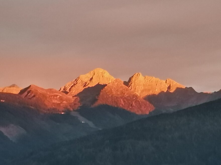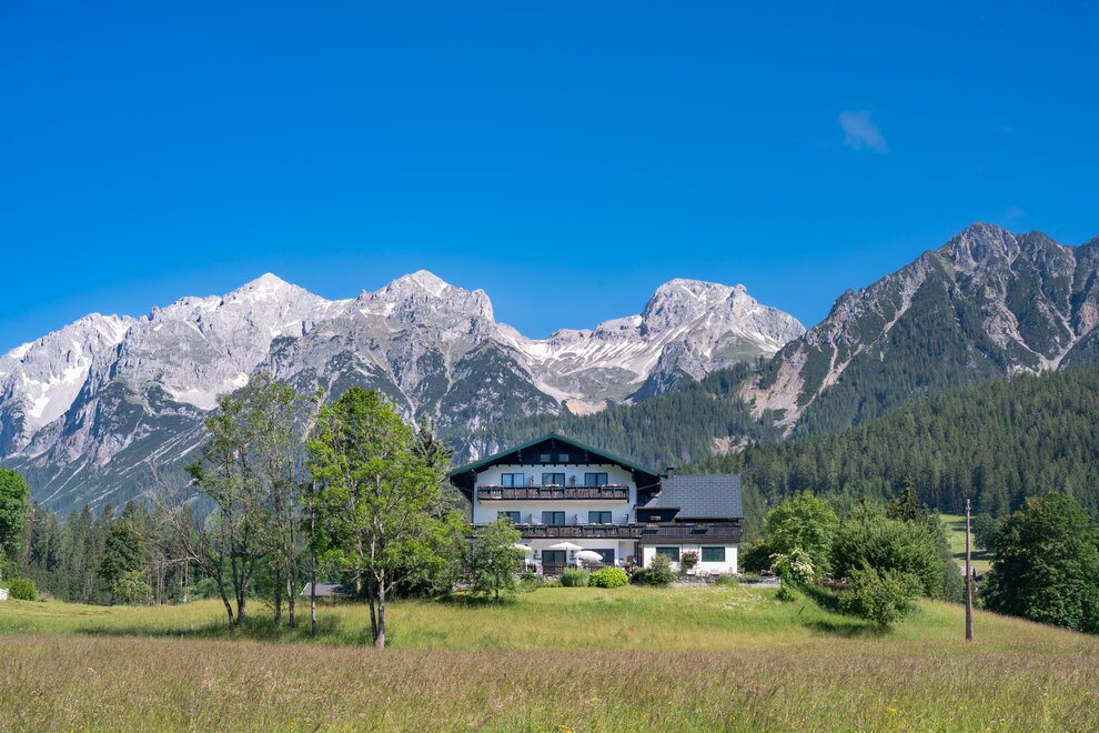 zicht op de Schladminger Tauern in het zuiden en op het imposante Dachsteinmassief in het noorden.