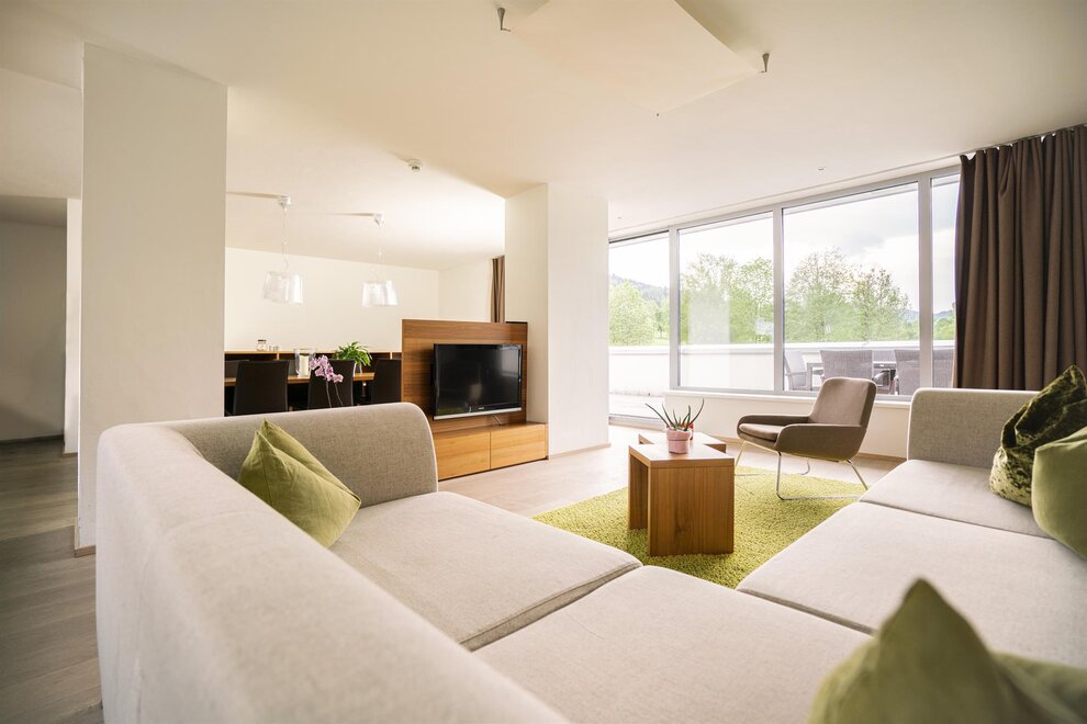 Our services including: underground garage, internet, set of fresh bed linens and hand towels on arrival, use of the heated outdoor pool (only in summer), Relax Oasis with Sauna, free Wifi, rent of bicycles, Salzburger Sportwelt Card