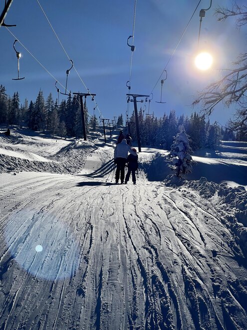 Onze kleinere appartementen zijn ook beschikbaar in de categorie Studio Family met balkon. De ongeveer 30 m2 grote studio voor 2 – 4 personen is praktisch en comfortabel tegelijk. Het heeft een slaapkamer met een kingsize bed en een tweepersoonsbank, evenals een volledig uitgeruste keuken. Bedlinnen en handdoeken zijn natuurlijk inbegrepen. Het appartement bevindt zich op de tweede verdieping van het gebouw. Vanaf het balkon kijkt u uit over de doelhelling van de Planai.
