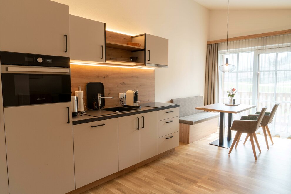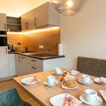 very spacious eat-in kitchen with dining area, 1 bedroom, shower/WC, sofa bed, balcony, mountain view