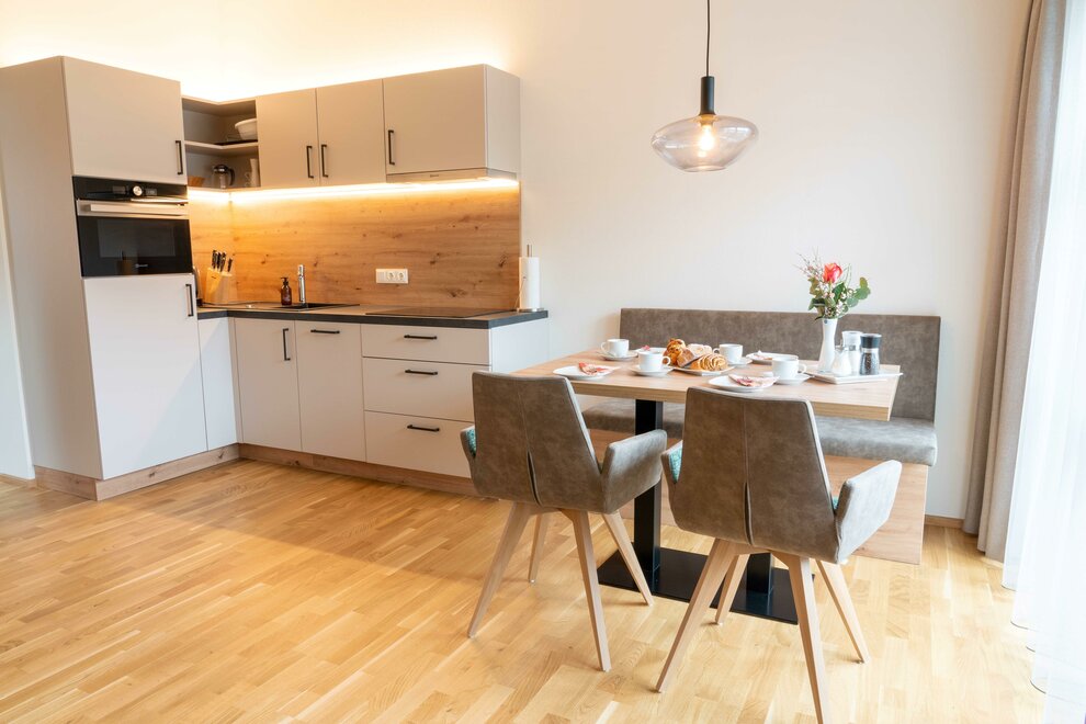 Rich gourmet breakfast buffet with selected high-quality products -> from freshly squeezed apple-carrot juice to freshly flaked oats for muesli. (in our breakfast pension next door)