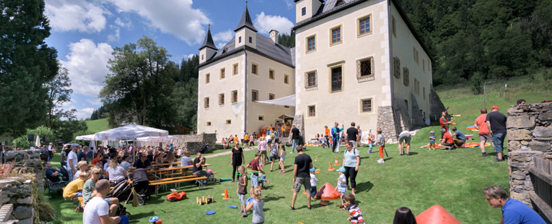 Morning pint concert by the Trachtenmusikkapelle Altenmarkt, Badhäusl Musi, large children's programme (stilt walkers, jugglers, face painting, airbrush, giant soap bubbles, ...). Catering by the Flachau mountain rescue service. Please use the shuttle service from the car park at Sägewerk Schnell, access to Schloss Höch from Wandersäge Unterbaumgarten only for local residents and authorised persons. Admission free!