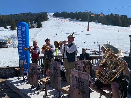 The Wildseeloder Blos create a cosy atmosphere from 12:00 on the terrace of the Bründlstadl with their live music. Enjoy the music while savouring a selection of over 100 different Austrian wines on offer at the hut.