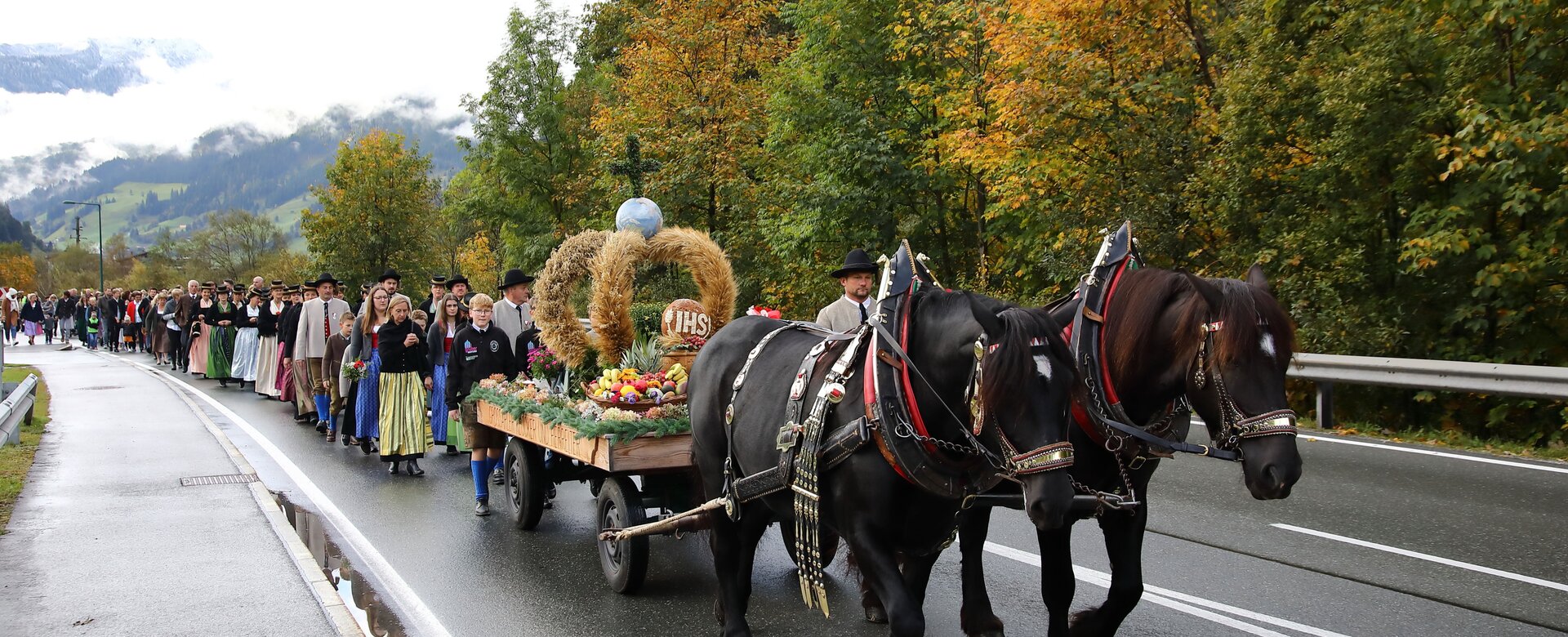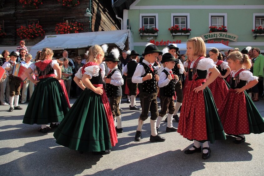 Assembly of the clubs and the population at the lift parking lot of the Panoramabahn for the annual harvest festival. Following the festive church service, the clubs of the Großarltal valley will proceed together to the town center. There, culinary specialties from the 'Bauernherbst' cuisine, traditional carving demonstrations, and a farmers' and crafts market await you. Various music and dance groups will provide a lively musical entertainment.