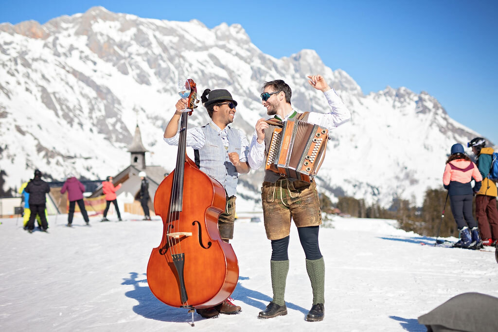 On this day, great emphasis is also placed on customs and tradition. In addition to the traditional "Schnalzer", which provide exciting moments, you can expect sounds of the "Alphorn" and "Weisenbläser". Traditional music from various folk groups can be heard in and around the ski huts. In addition, "Nostalgieskifahrer" with their nostalgic equipment can be seen in the whole skiing area. There you might feel transported back to earlier times and experience tradition live.