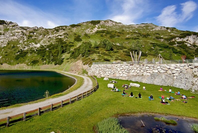 Asanas on the alpine meadow - yoga in the great outdoors is a very special experience. At Yoga am Berg in Zauchensee you unroll your yoga mat on the shore of the glittering Seekarsee and enjoy the power of the mountains during the exercises.