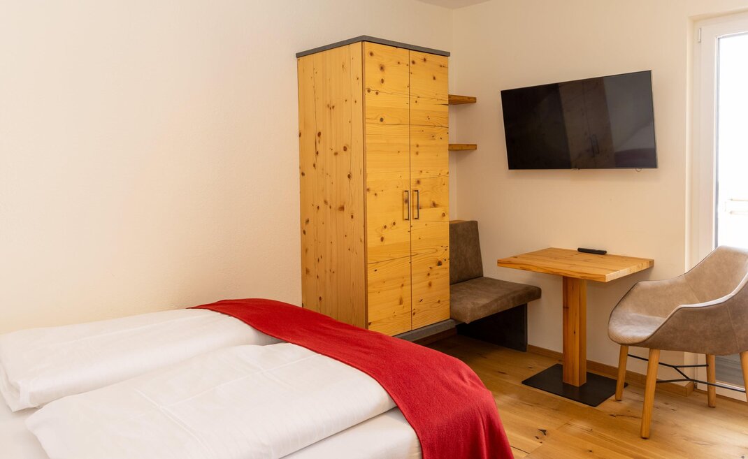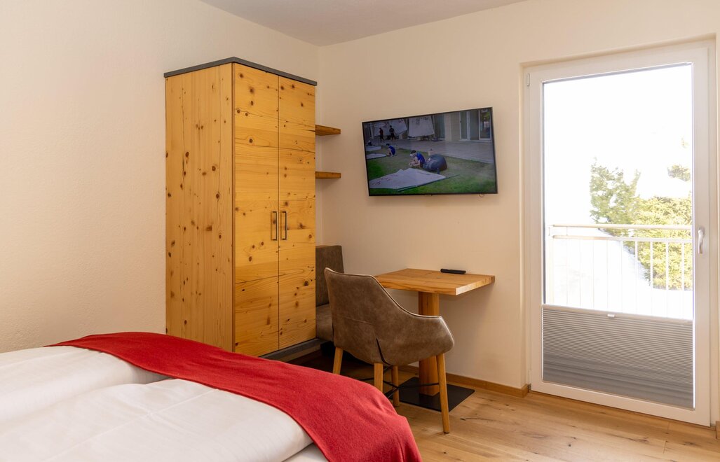 Wykonane przez mistrza meble zachwycają przytulnością. A jeśli mimo to chcesz wyjść na zewnątrz, balkon po stronie południowej oferuje wystarczająco dużo słońca i idylliczną panoramę.Wyposażenie pokoju