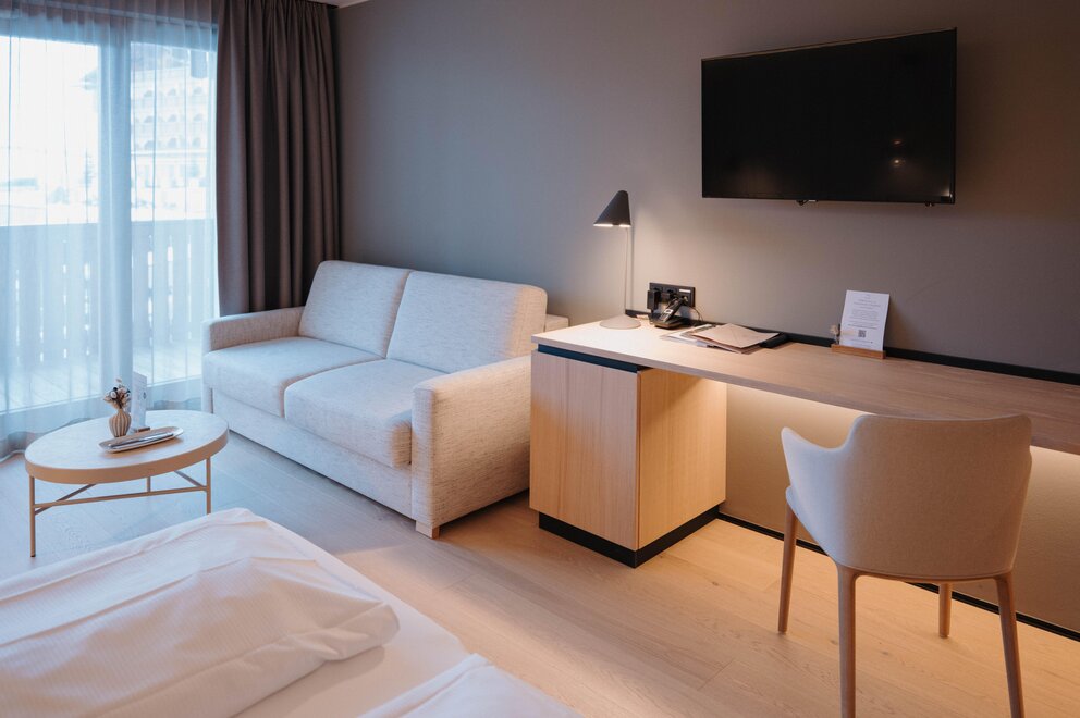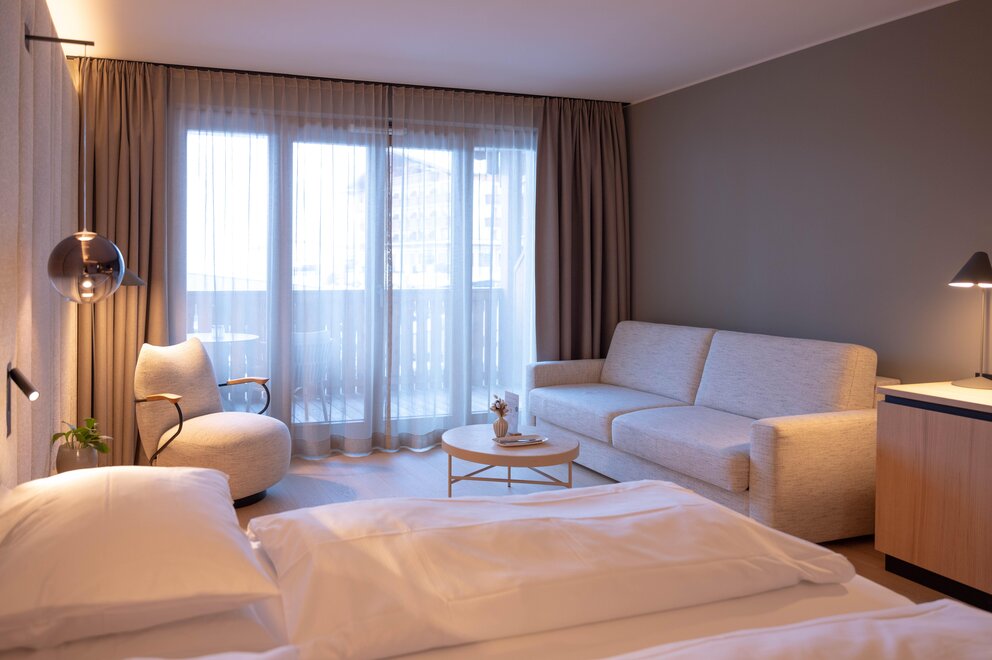 From May 2026, you can look forward to our newly designed family room, created for shared time and unforgettable vacation moments. Generously planned and furnished with great attention to detail, it offers a separate area for the children with a sleeping nook and partially additional daybed – ideal for security and retreat for the whole family.