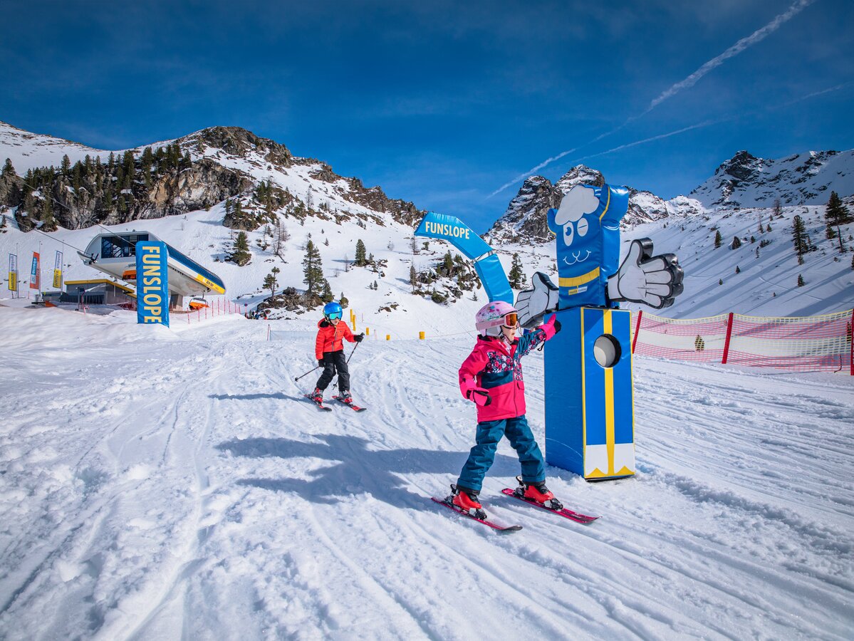 With the Hoop Race, a Speed booster, a hand to give a low five to when you pass, a hand to give a high five to, which then makes a sound when you ski pass and a sound slopy are also great ”no-snow-elements” at this much-loved slope attraction and ensure that maximum fun is had on the slopes. But be careful: the slope cop measures your speed.