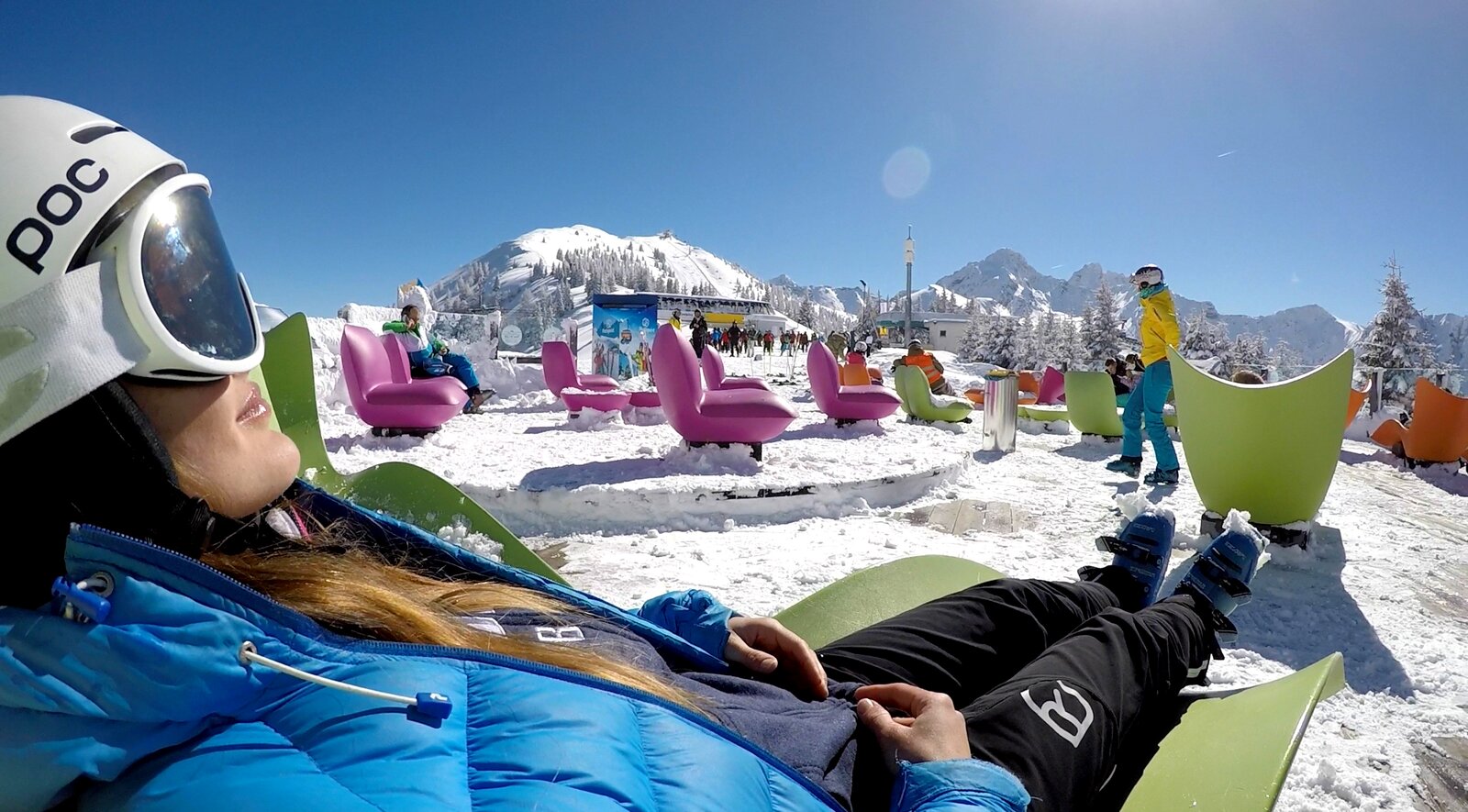Take a break from carving and skiing and relax at the Pleasure Island. At a level of 1,800 m, 360 degree panorama sun loungers invite you take it easy and enjoy a break beforehand, in between, or after your downhill runs. Perfect photo hotspot: Take advantage of the possibility to share the great time you are having with your loved ones at home.