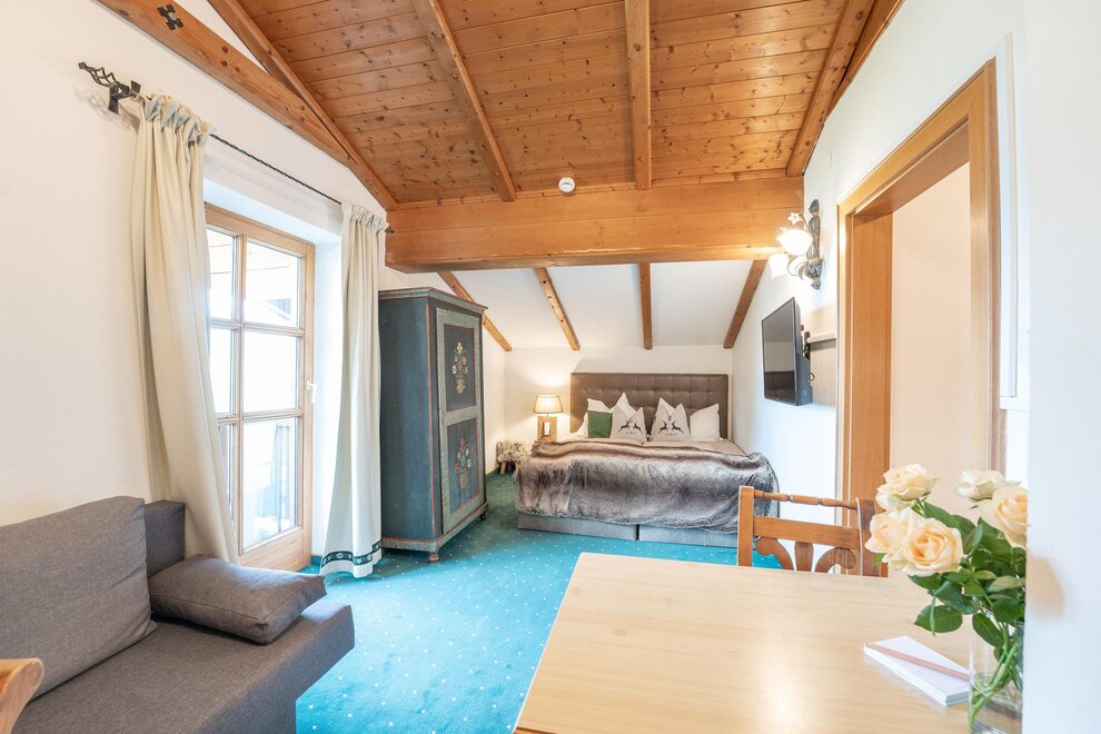 The apartment on the top floor has 1 bedroom and 1 living room with 2 beds. The bright, friendly rooms also have a balcony. There is a fully equipped kitchenette and a bathroom with shower and WC.