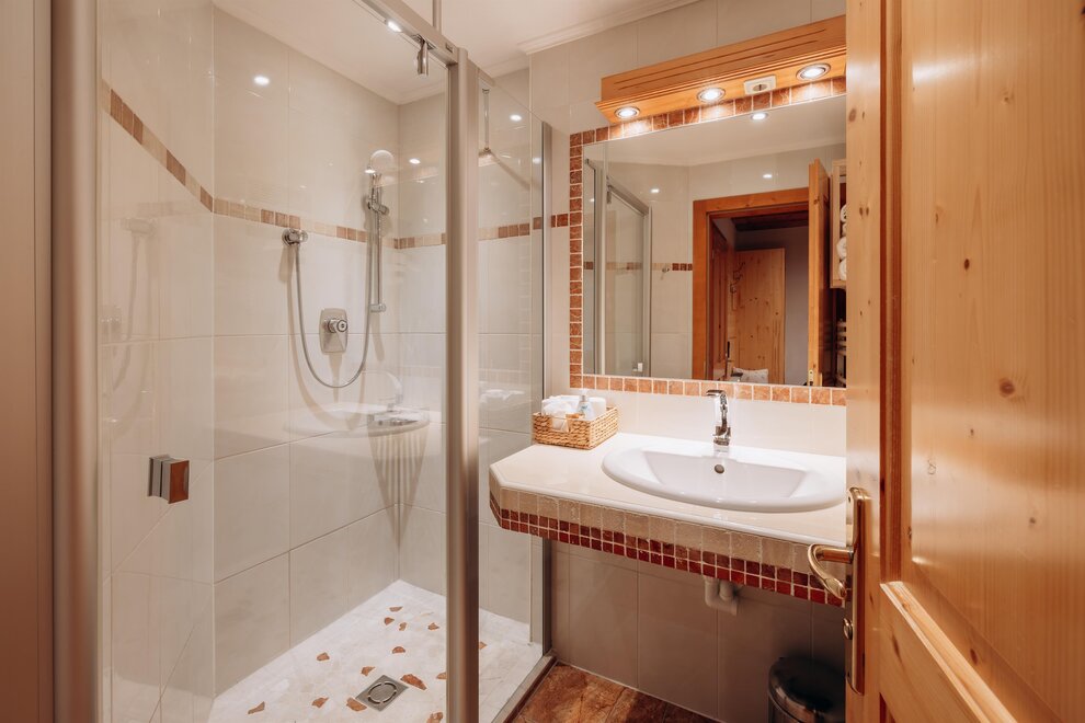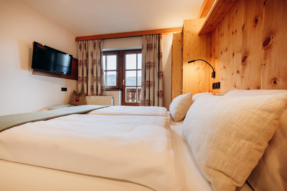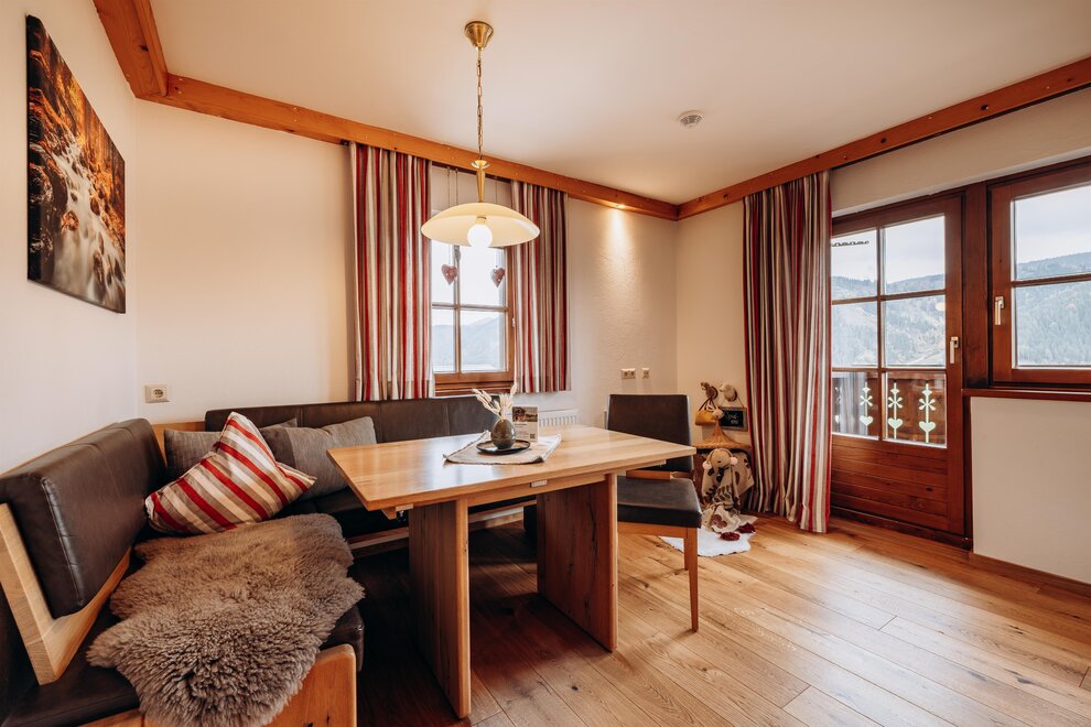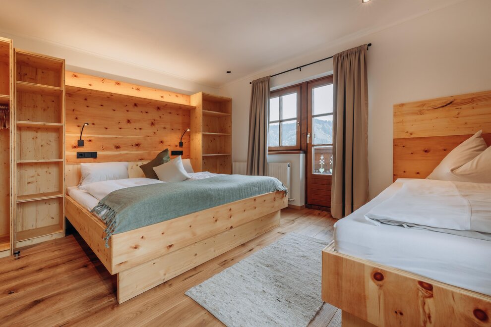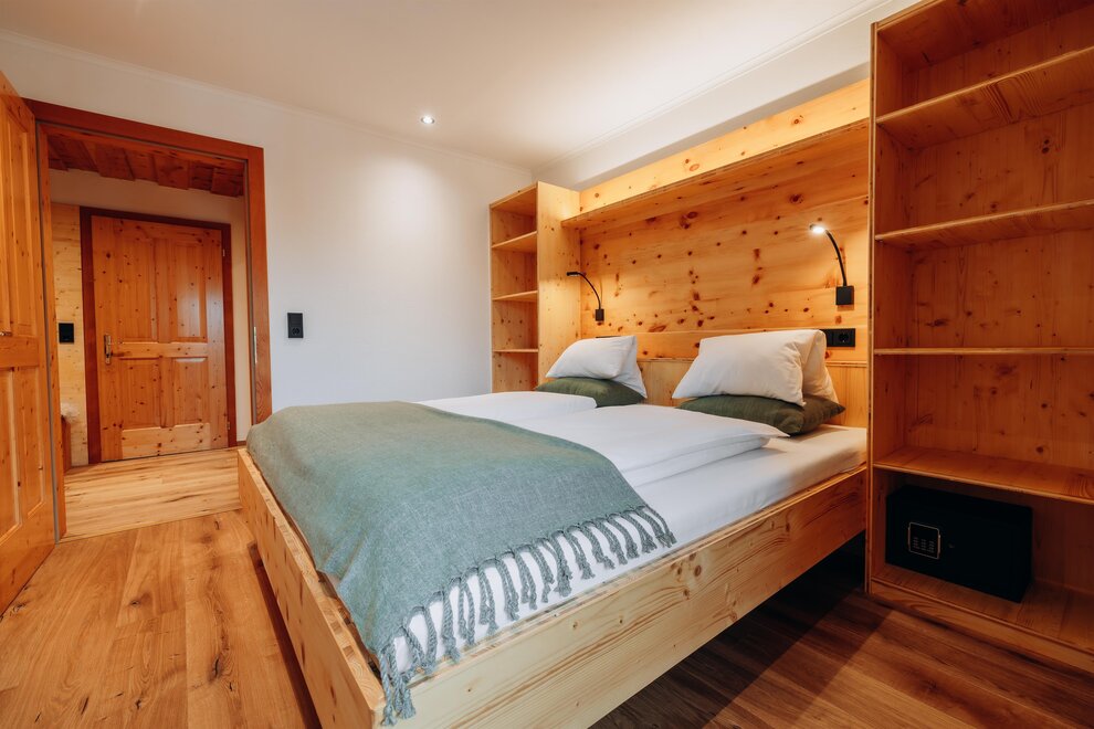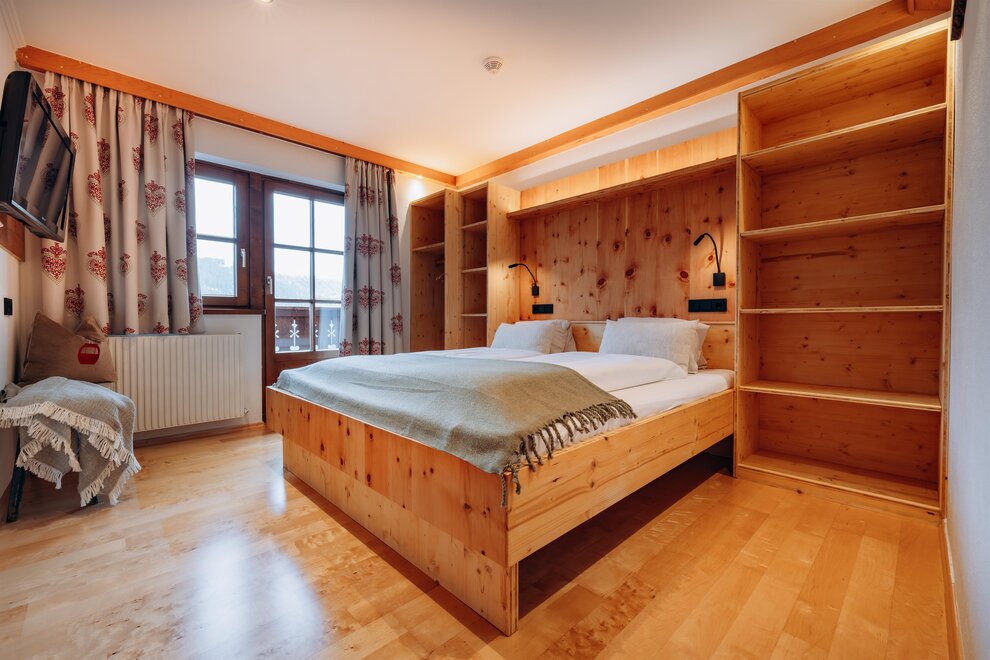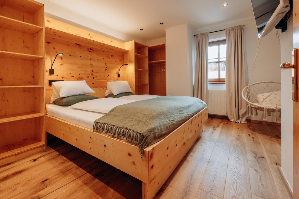 Stay in a cosy bedroom with high quality solid wood furniture and you will be enchanted by the panoramic view of the Dachstein mountains.