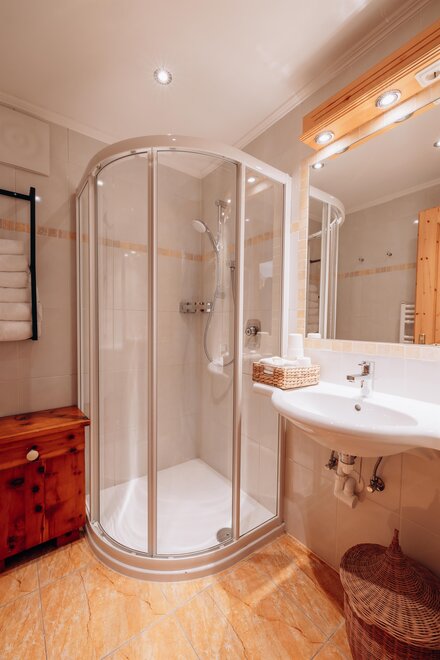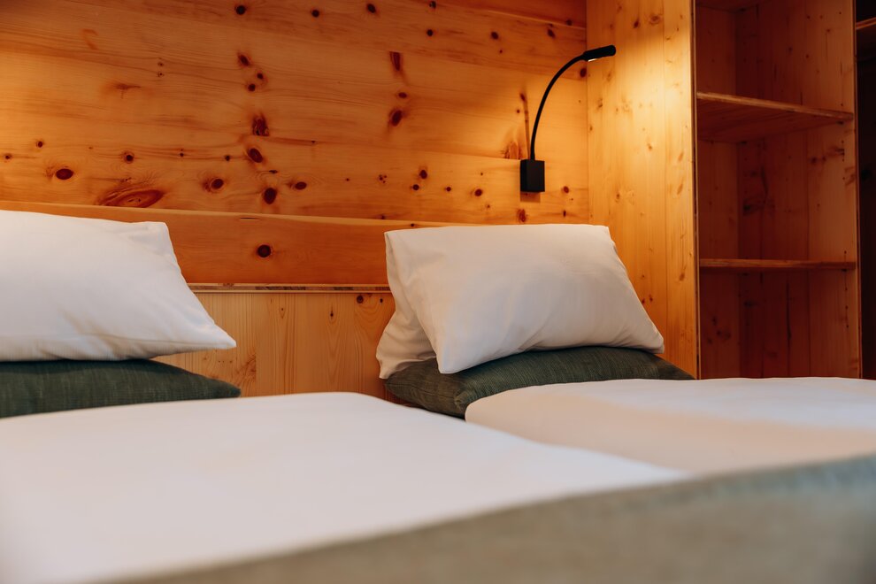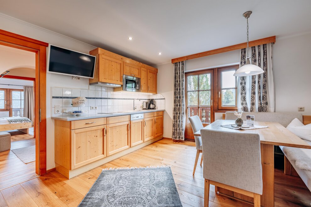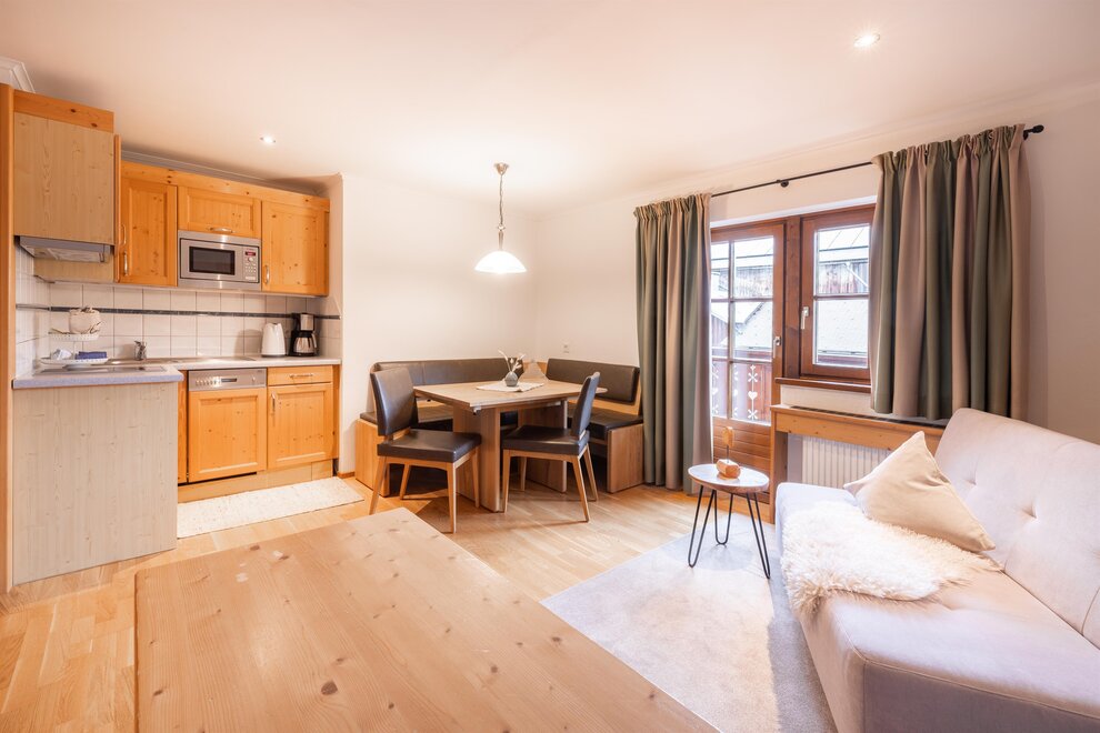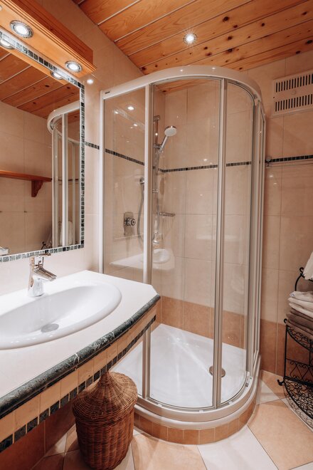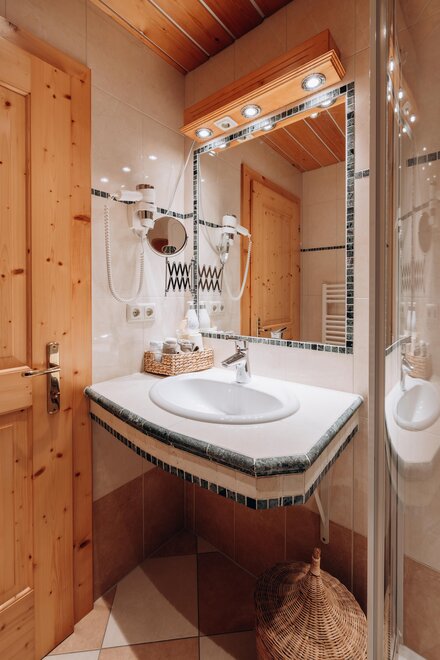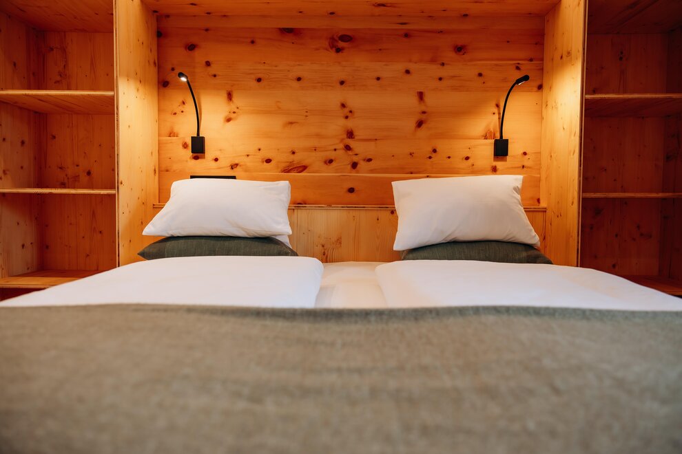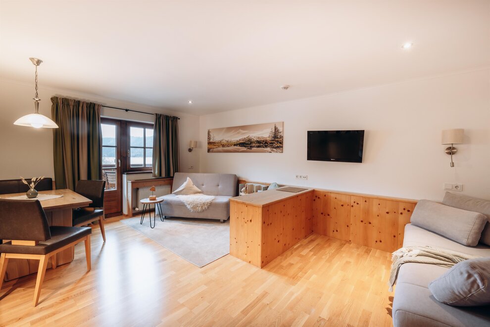 Stay in a cosy bedroom with high quality solid wood furniture and you will be enchanted by the panoramic view of the Dachstein mountains.