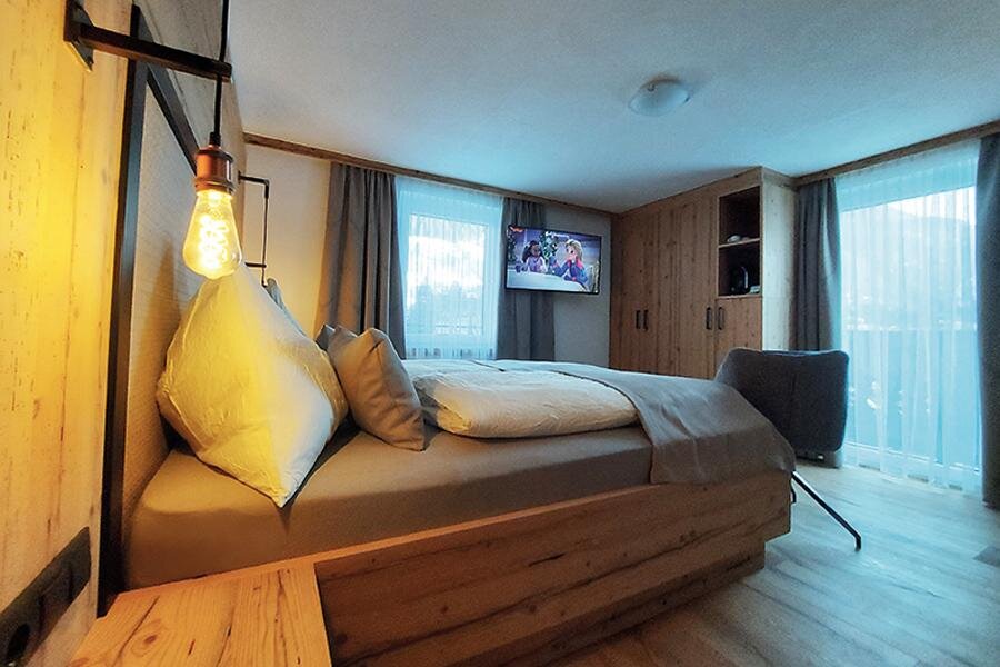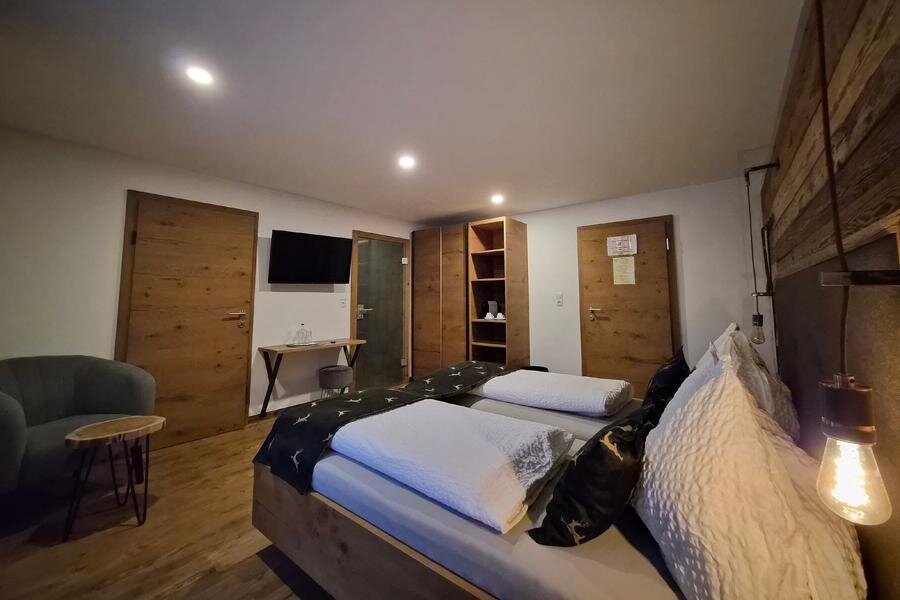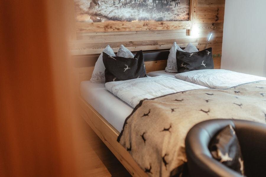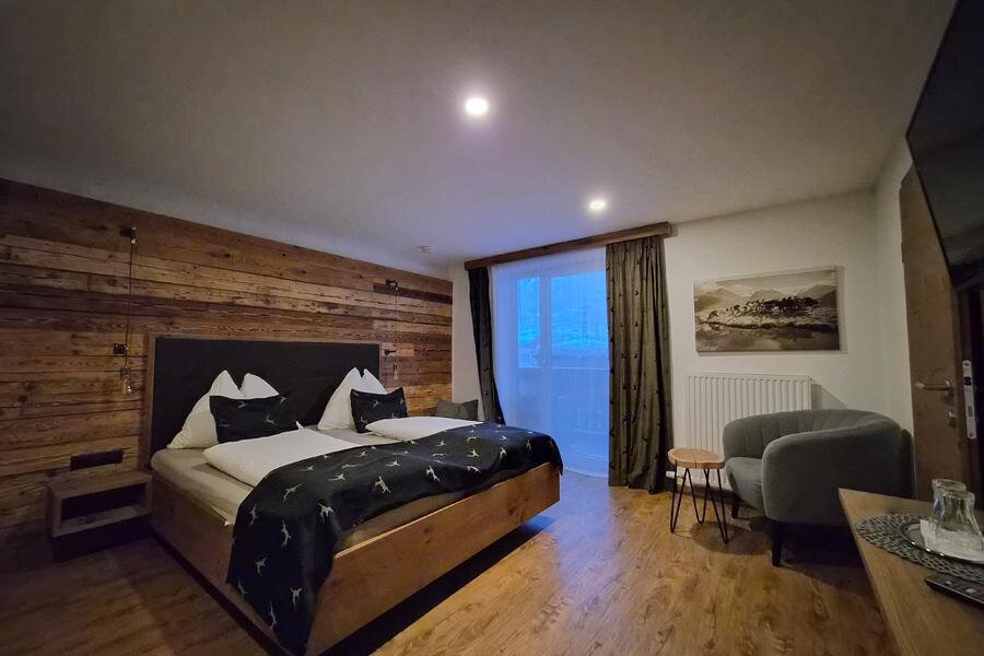 This cozy arranged spacious room in alpin-style provides a bed with open headboard, nice seating areas, shower, WC or bath, cable-TV, blow-dryer and a safe.Some rooms have you free W-Lan, a balcony and parquetted floors ready.