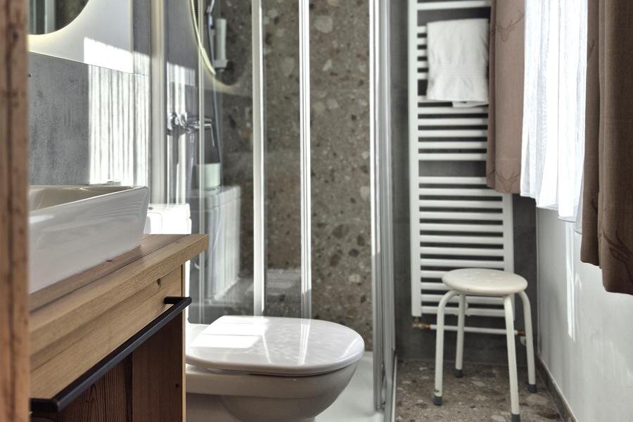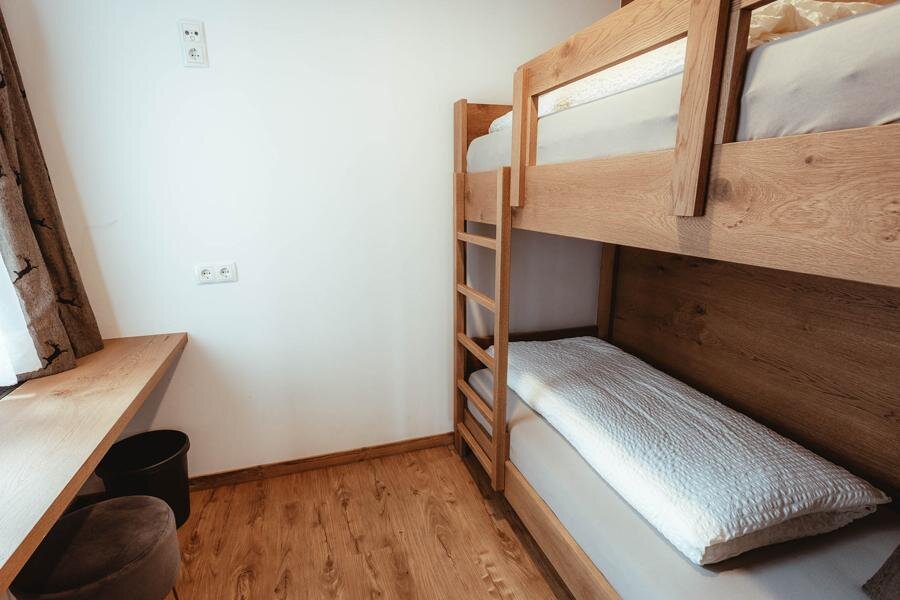 This cozy arranged small room in alpin-style provides a bunk bed, nice seating areas, shower, WC or bath, cable-TV, blow-dryer and a safe. Some rooms have you free W-Lan, a balcony and parquetted floors ready.