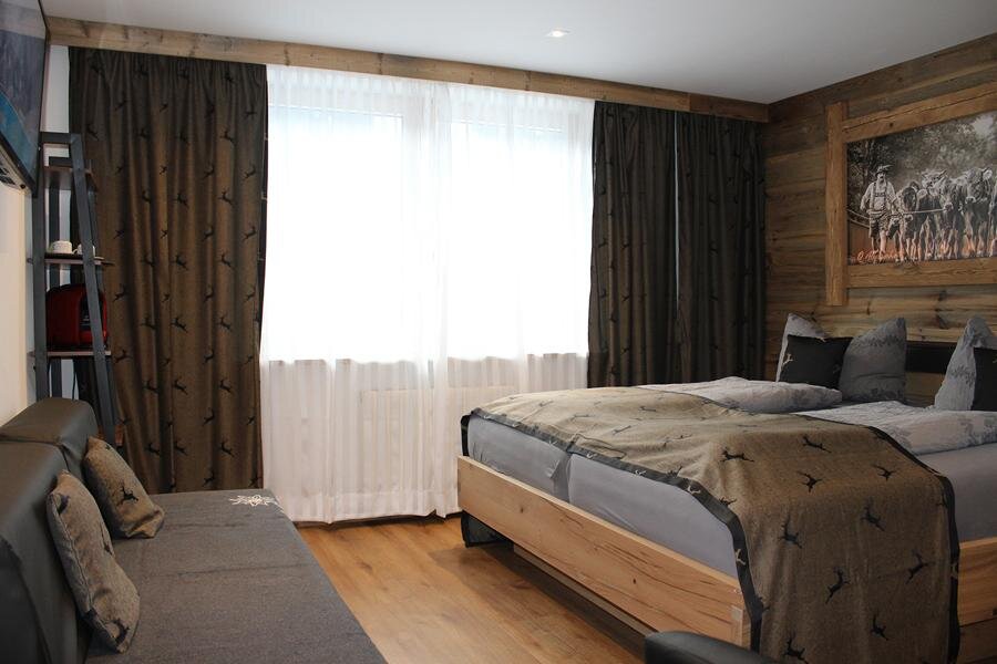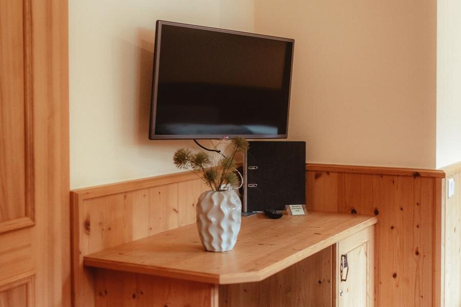 This cozy arranged small room in alpin-style provides a bed with open headboard, nice seating areas, shower, WC or bath, cable-TV, blow-dryer and a safe. Some rooms have free W-Lan, a balcony and parquetted floors ready.
