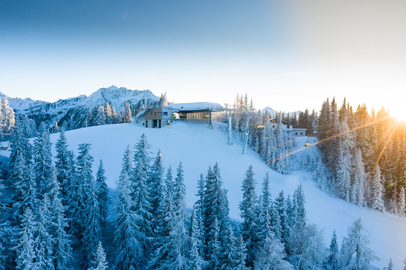 • Modern valley station building "Planet Planai" with shops, ski depot & info services