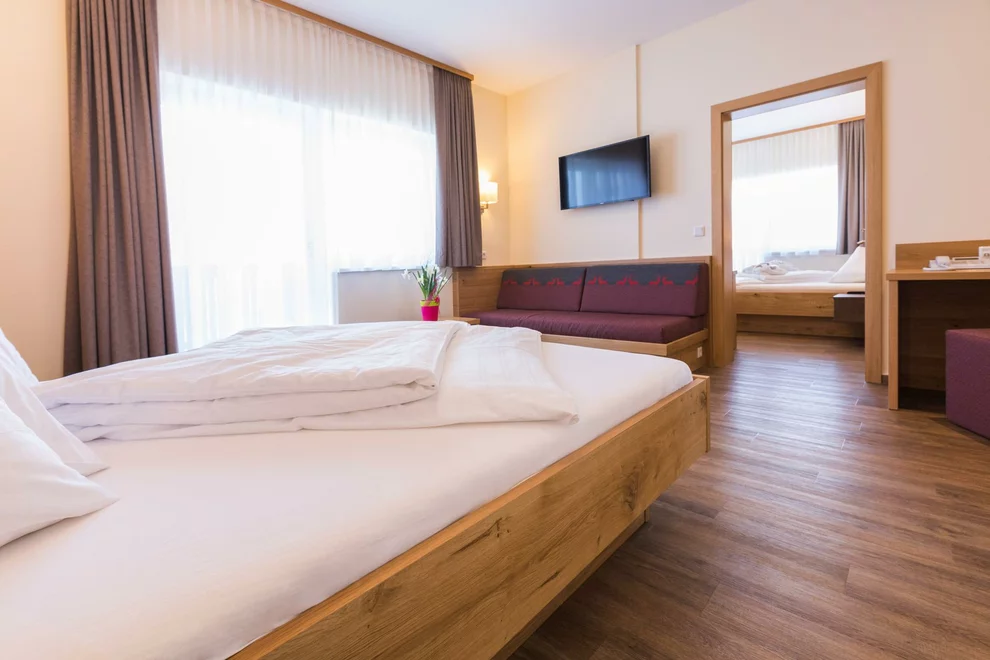 Our family rooms are suitable for 2-4 people and have 1 double bed and a living area or 2 separate beds. Facilities: seating, flat screen TV with SAT, radio, telephone, hotel safe, shower or bath and WC, hairdryer, make-up mirror, heated towel dryer, bathrobe, minibar, balcony, free WiFi.