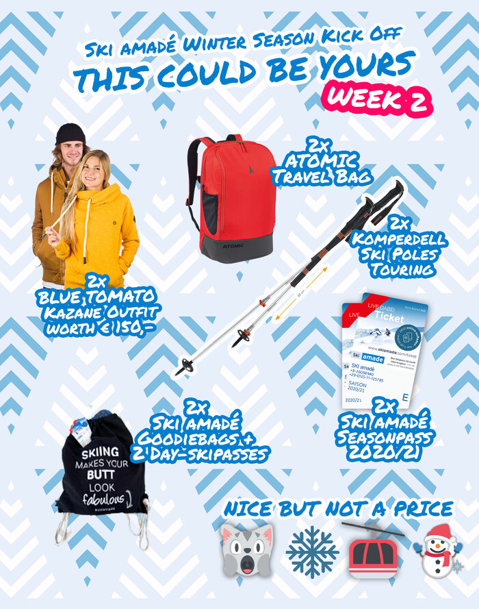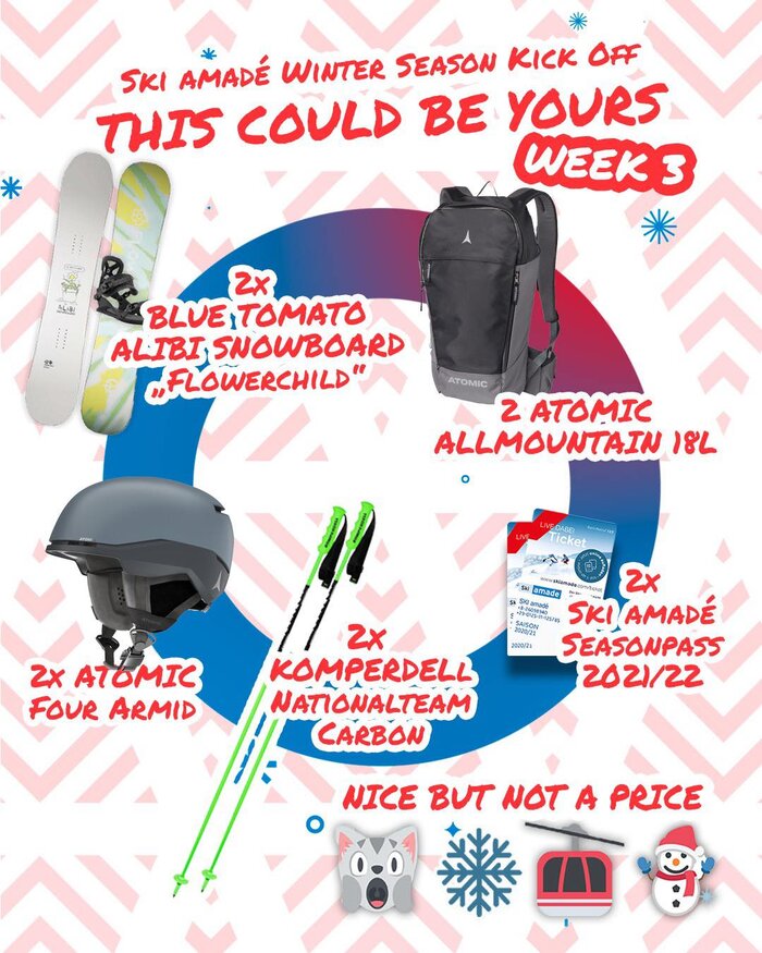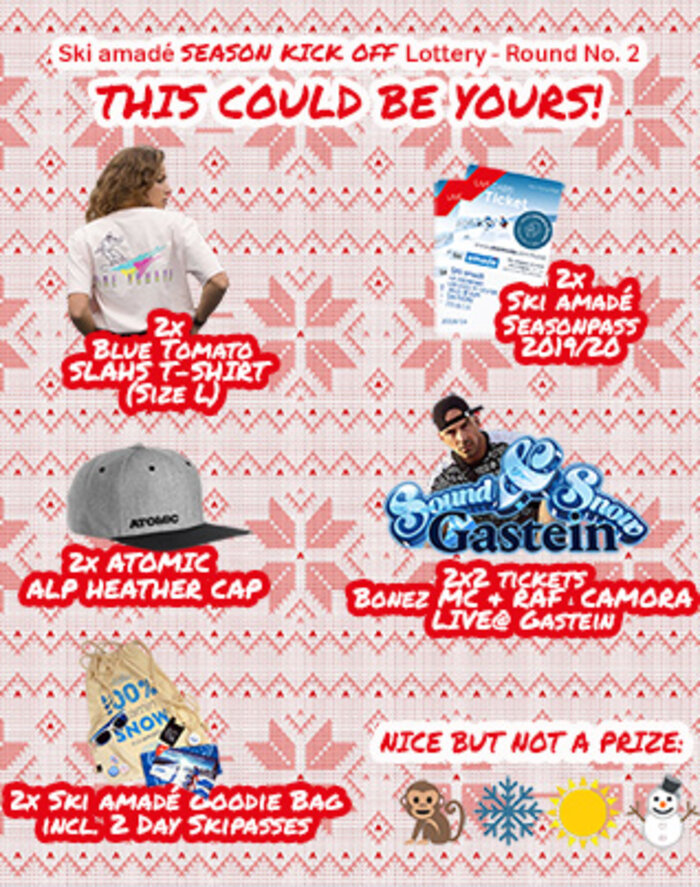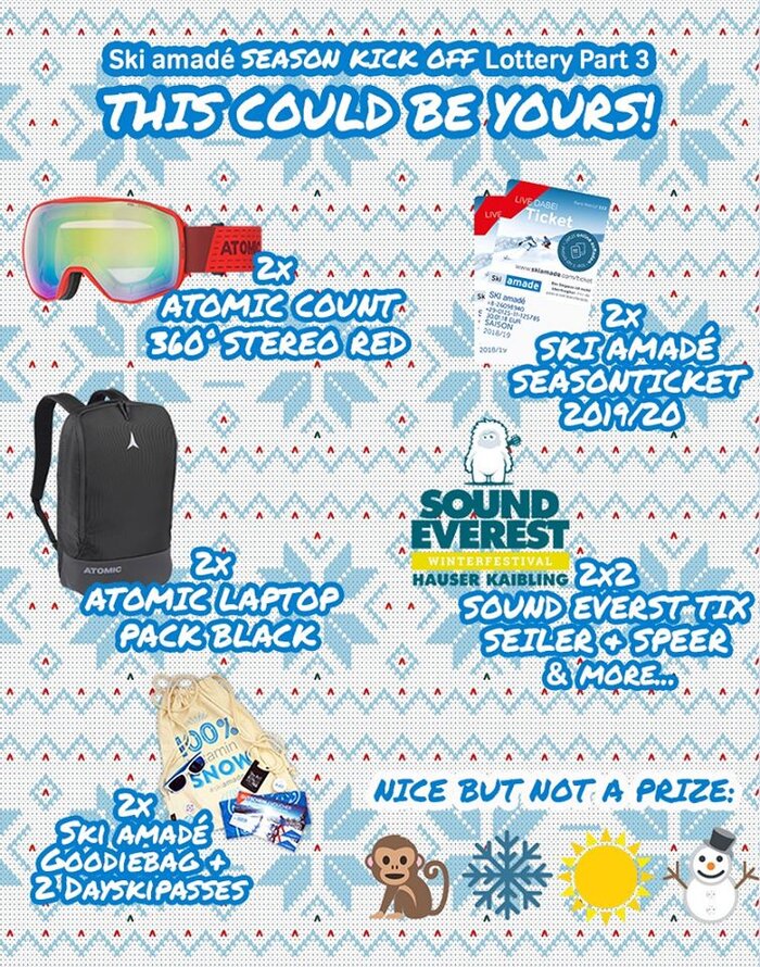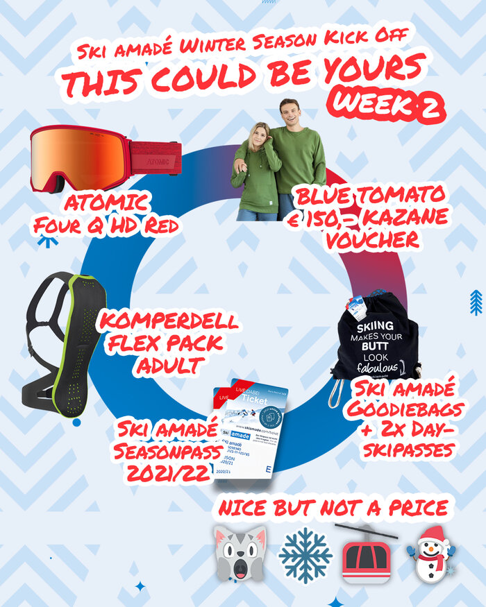 1st place: 1x Ski amadé trip for 4 people: 4 nights in a 4* hotel with half board and 4-day ski passes for the winter season 2025/26 or 26/27