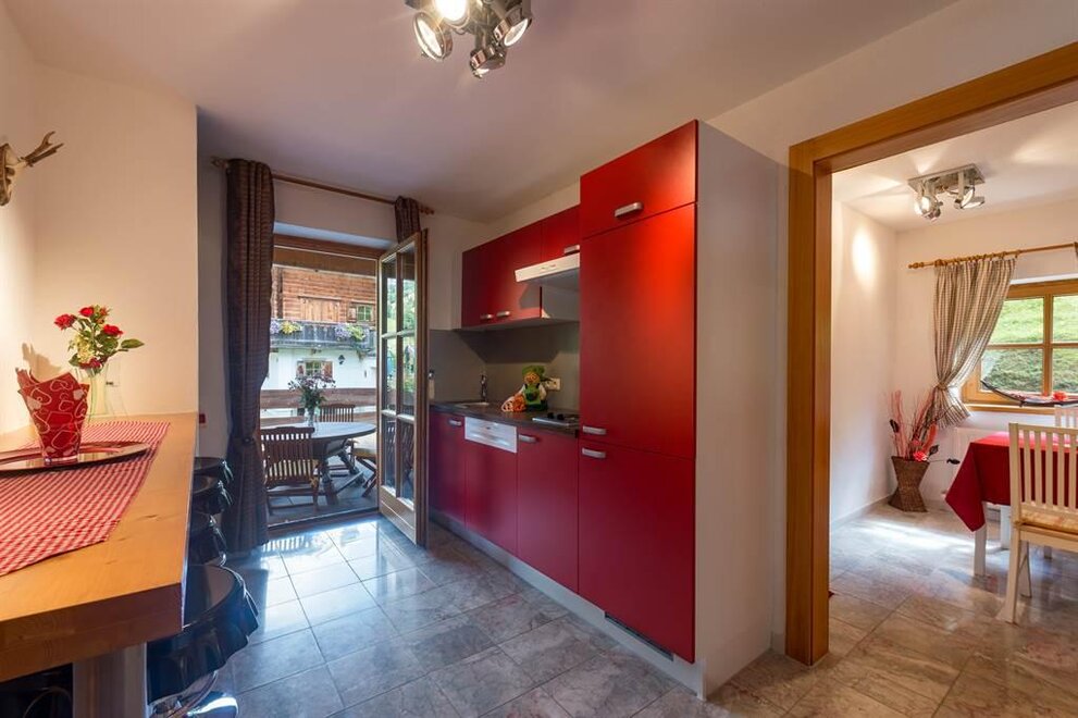 The luxury apartment with 65 m² is suitable for couples and families up to 5 persons. The big balcony surround the whole apartment, with an amaazing view at the "Hochkönig". The living room contains a big pull-out couch (2x3 meters). Furthermore, the whole living room has a beautiful wooden parquet floor.Moreover, the living room has a direct access to the terrace through a glas door. Separated from the living room, there is the fully equiped kitchen. The whole apartment have a wonderful natuaral parquet floor.