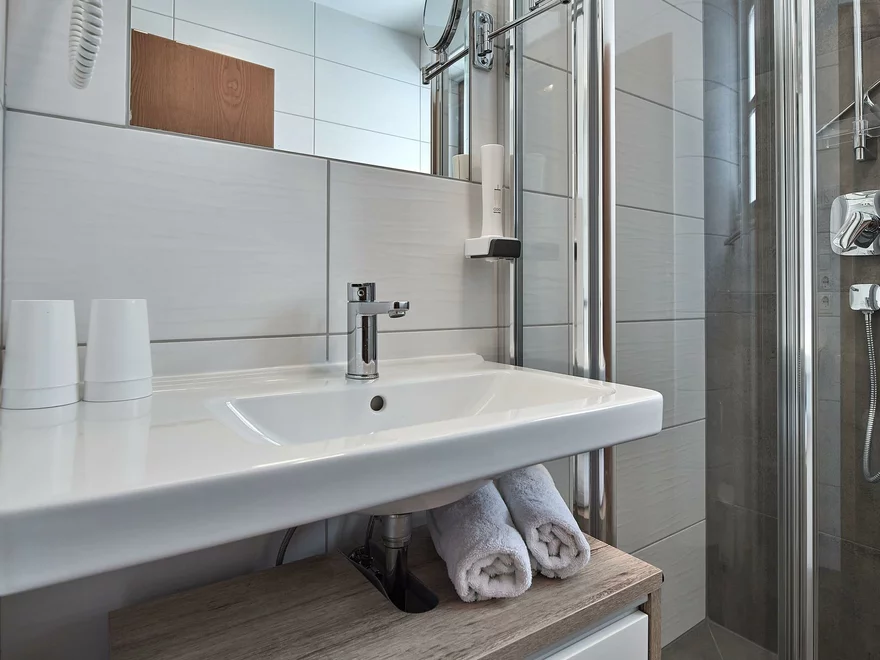- Zimmer werden nach jeder Gast-Abreise sorgfältigst gereinigt, insbesonders oft berührte Gegenstände
